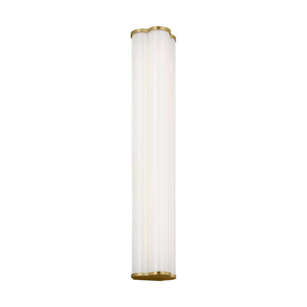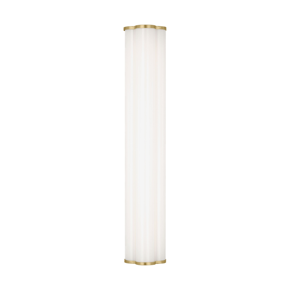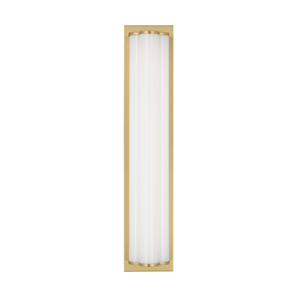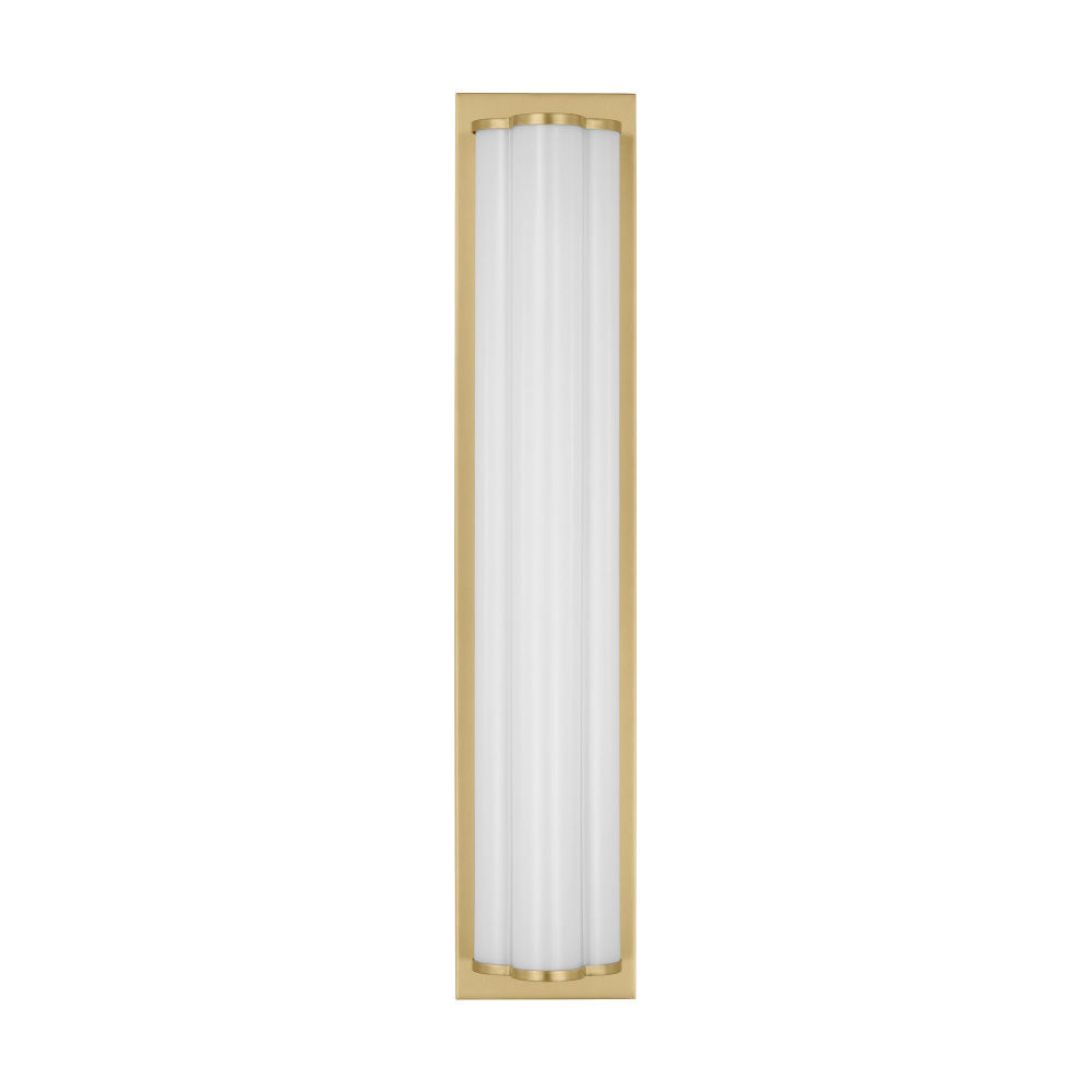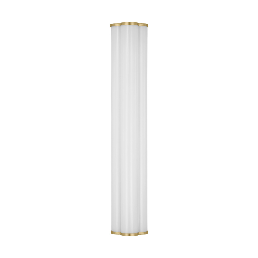 The Freya is a unique design by kate spade new york with three milk glass cylinders resting on a Burnished Brass back plate that can be placed vertically or horizontally. These wall lights are also technologically savvy, fitted with an integrated LED. With their sleek and chic design, the Freya vanity fixtures effortlessly complement any decor style, adding a dash of glamour to your dressing room, bathroom, or bedroom.