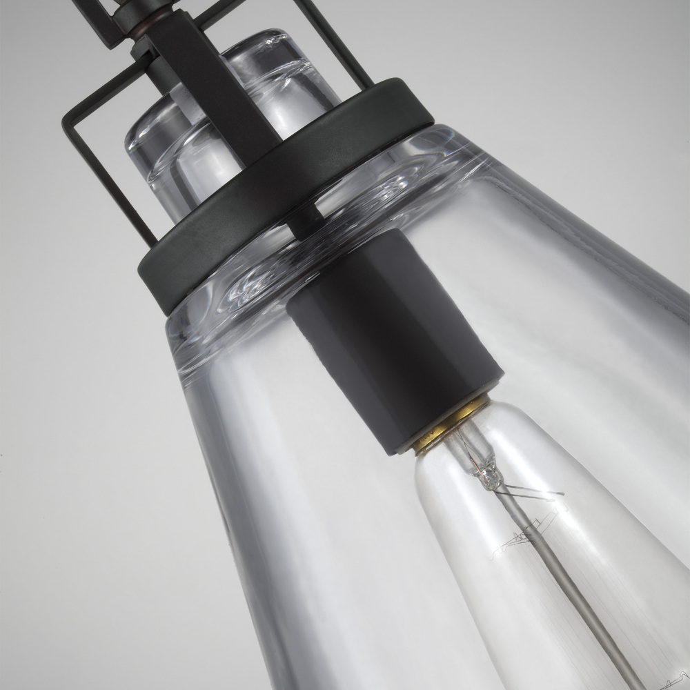 The Sean Lavin Frontage, one light pendant in oil-rubbed bronze, is the perfect way to achieve your home's desired fashion or functional needs. The modern Frontage pendant light collection by Sean Lavin is an updated interpretation of a vintage warehouse fixture. In conical silhouettes, the hand-blown Opal Etched glass or Pressed Clear glass shades to create a dramatic contrast to the industrial frame detail which crowns each pendant. When Edison-style lamps are selected, they reinforce the vintage reference while giving the fixtures a dramatic and contemporary flair. These 1-light pendants are available with either Oil Rubbed Bronze or Satin Nickel finishes.