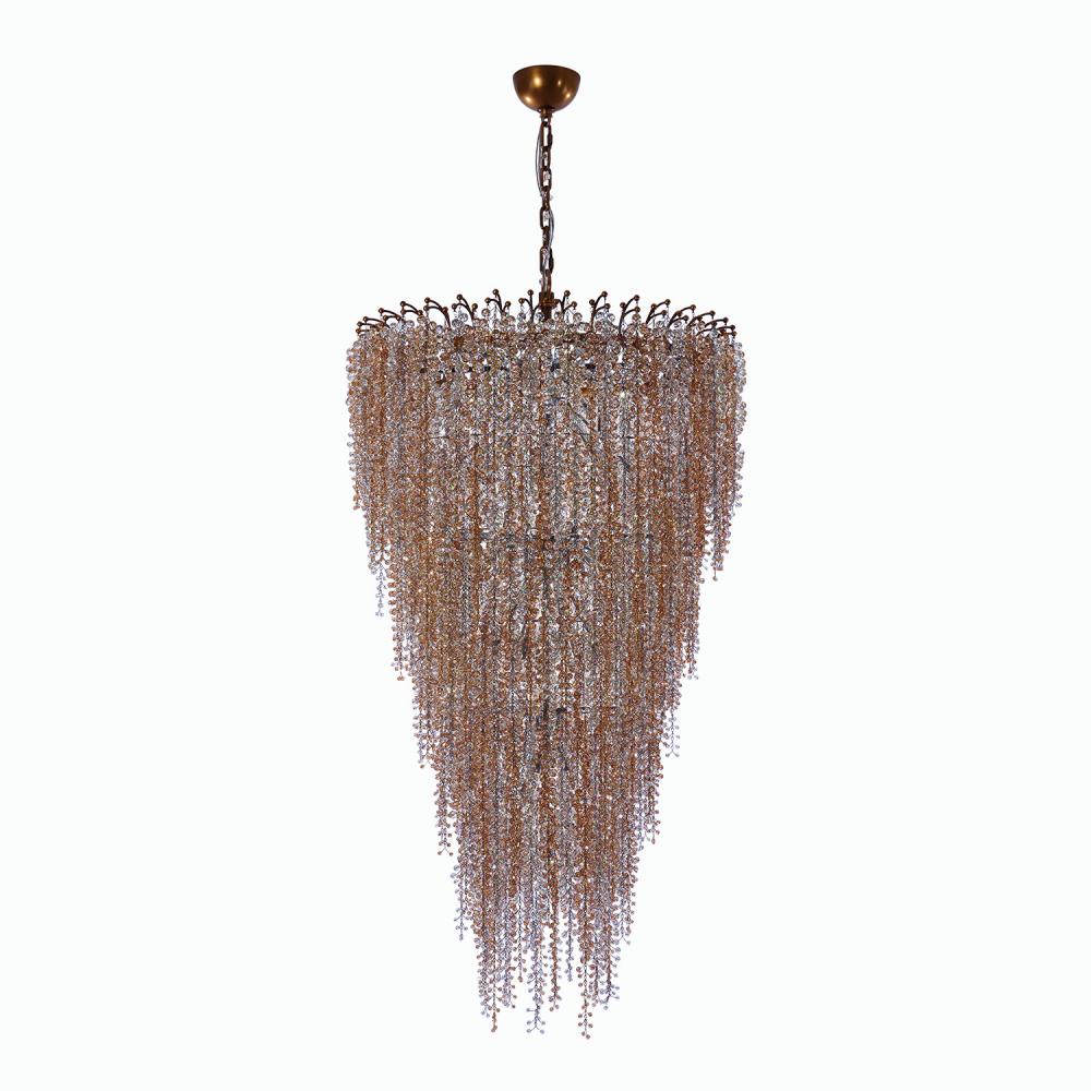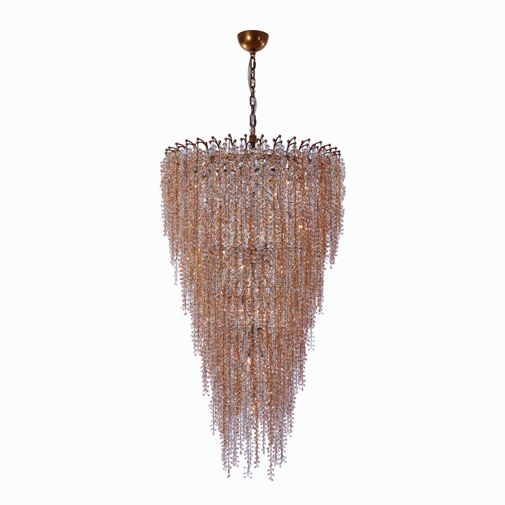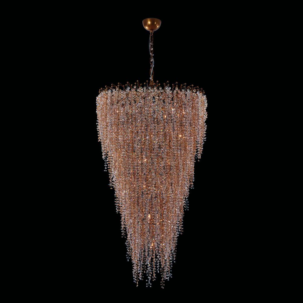 A modern abstract representation of nature, the wisteria inspired Fuji collection creates a vine-like cascade of mixed champagne gold and clear crystals for depth and warmth. Elegance and sophistication included at no extra charge