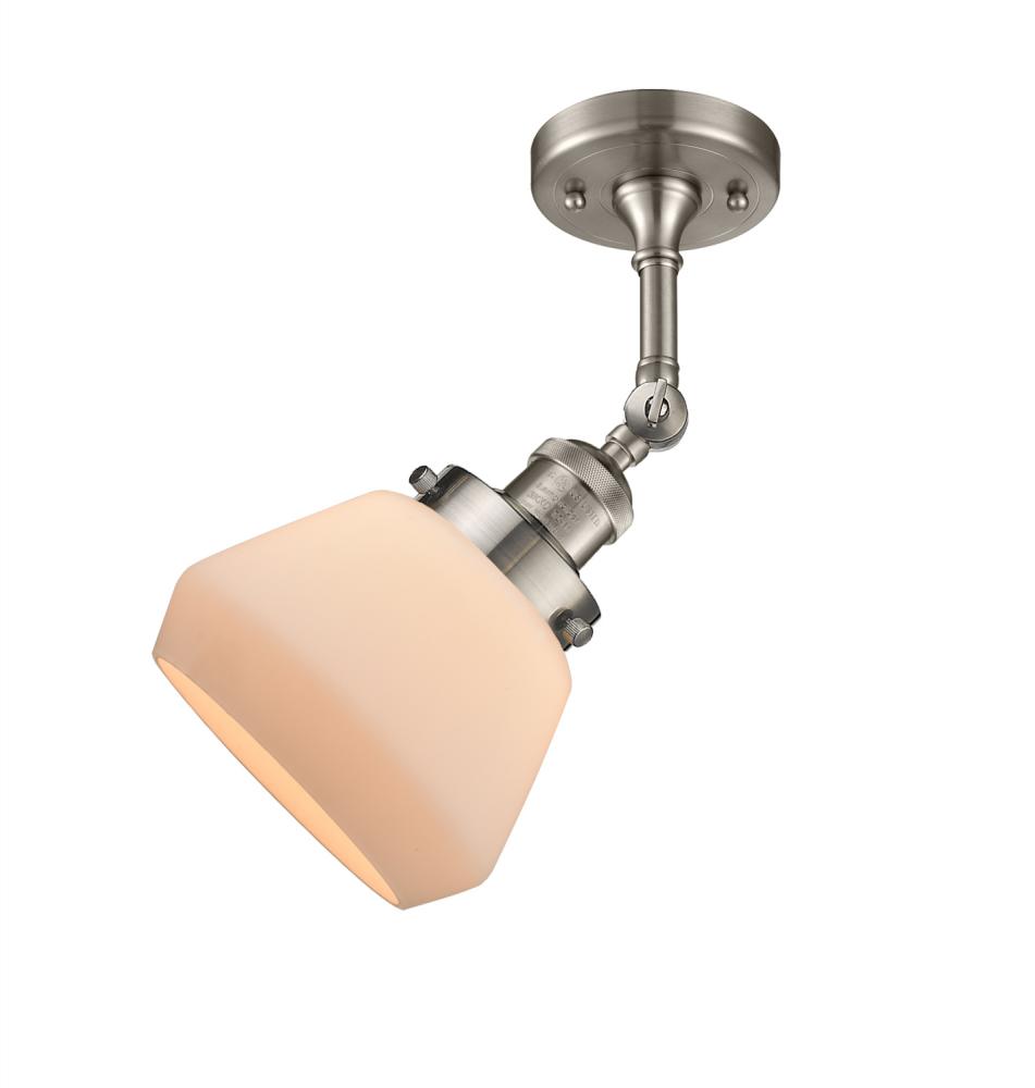 Fulton - 1 Light - 7 inch - Brushed Satin Nickel - Matte White Shade - Adjustable Semi-Flush Mount
