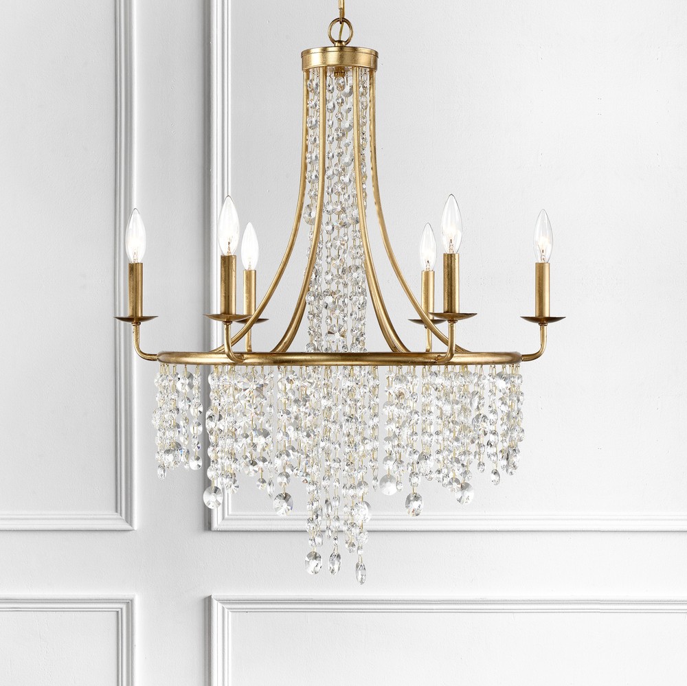 The beautiful Gabrielle silhouette is made of cascading faceted hand-cut crystal strands suspended from its delicate frame. The framework is crafted in wrought iron and available in antique gold, and matte black finishes. Elevate your living space and add character to a room with the Gabrielle collection.