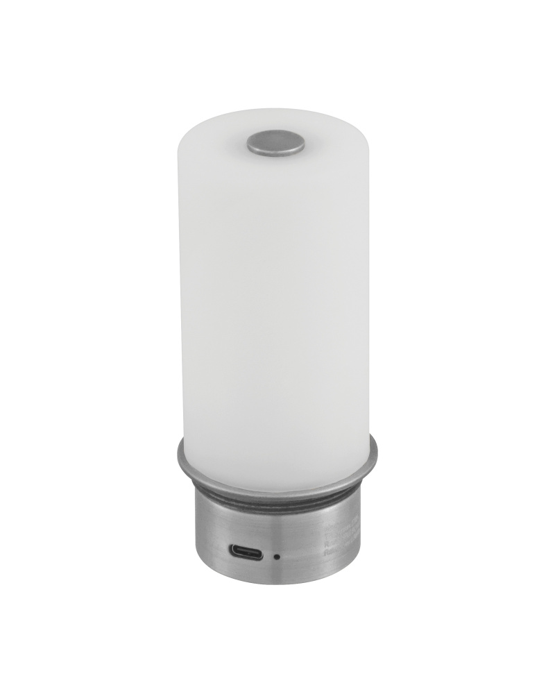The Gadabout Nickel Cordless Table Lamp is a silver lamp that is easy to move from room to room given it is fitted with a rechargeable bulb. The light source sits atop the thin stem beneath a matching metal shade in a polished nickel finish. The on/off switch is on the top of the bulb and the shade is finished on the inside for a luxe touch.