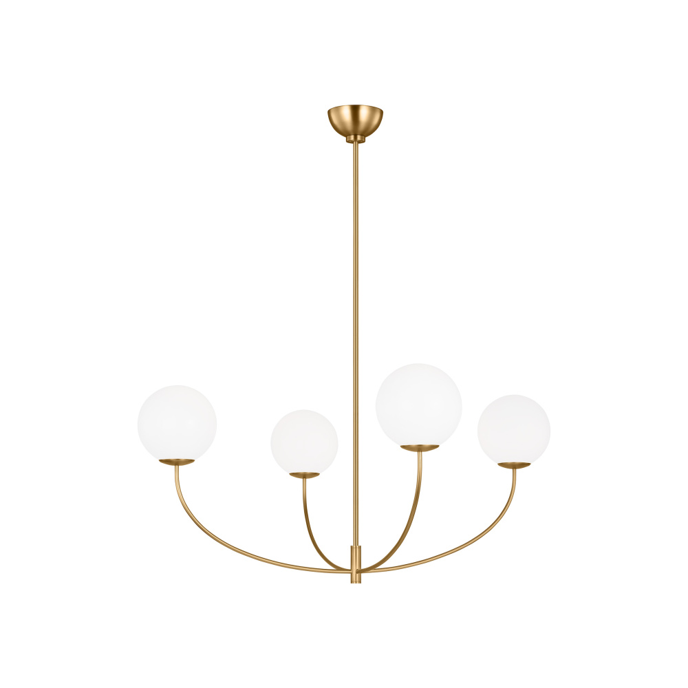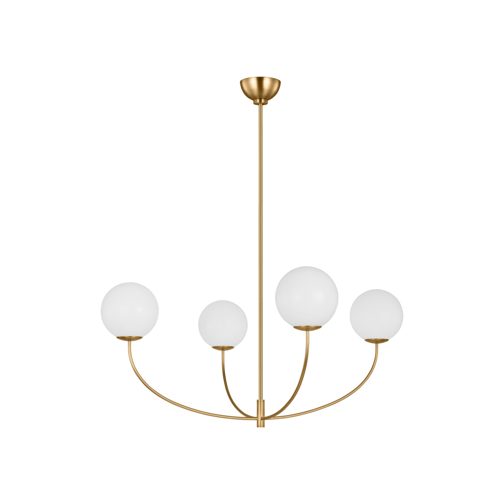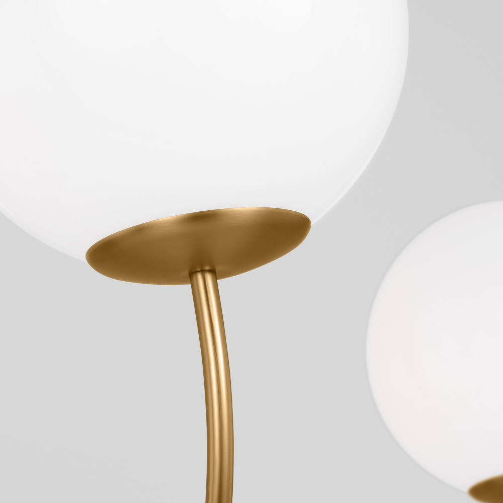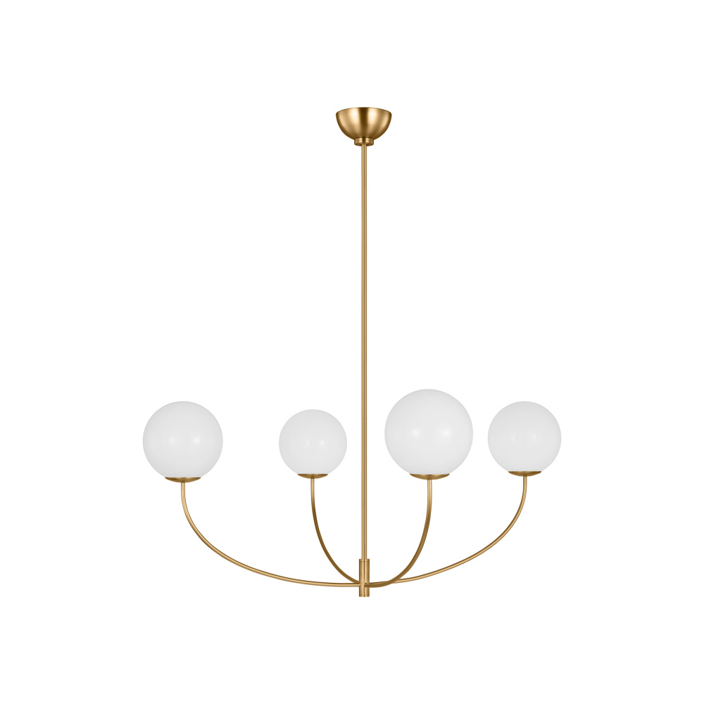 Originally inspired by kinetic sculpture, the Galassia chandelier perfectly balances glass globes on an elongated frame, which gives it a contemporary look. The white glass casts a soft, welcoming glow over space, while the elongated frame works particularly well in high-ceiling rooms.