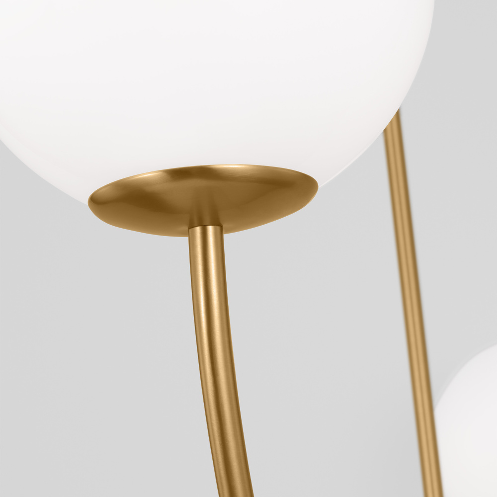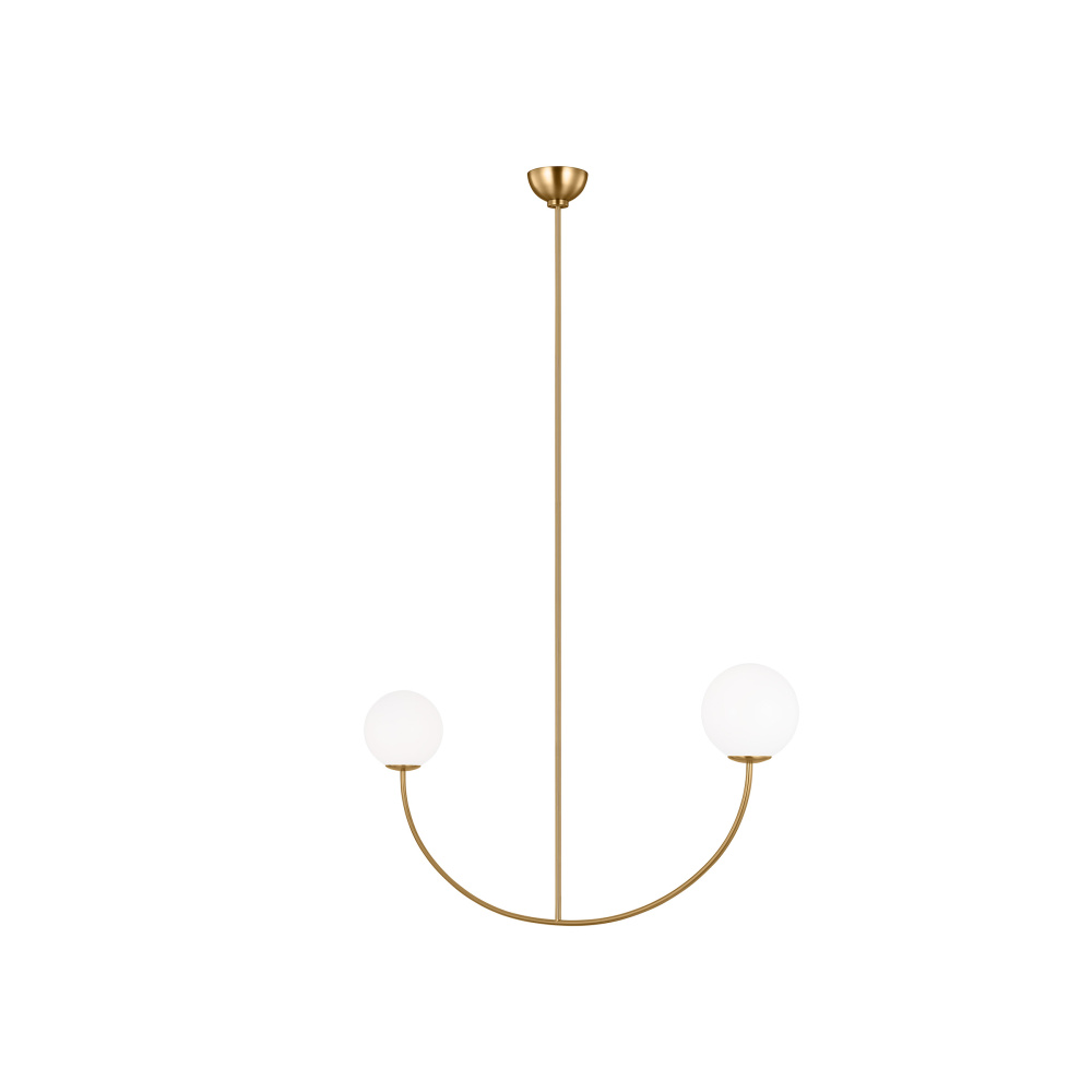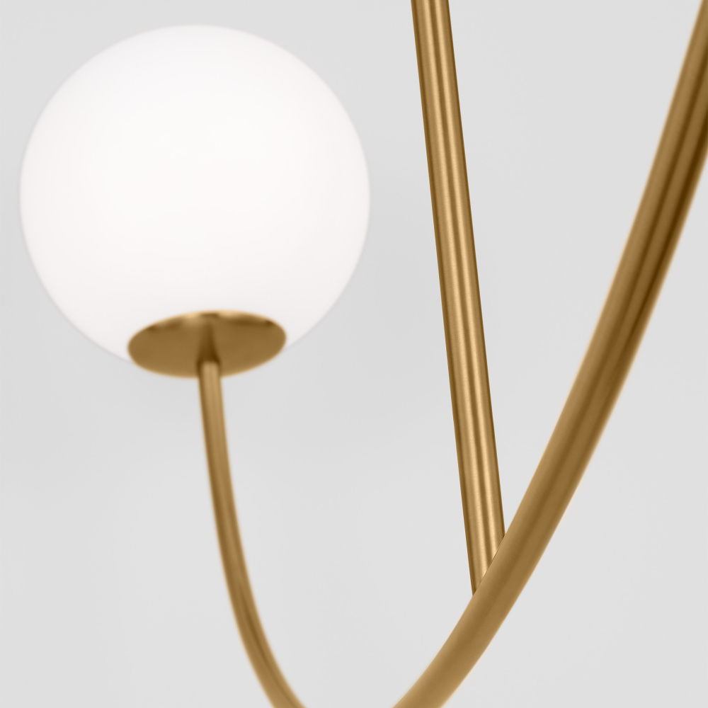 Originally inspired by kinetic sculpture, the Galassia chandelier perfectly balances glass globes on an elongated frame, which gives it a contemporary look. The white glass casts a soft, welcoming glow over space, while the elongated frame works particularly well in high-ceiling rooms.