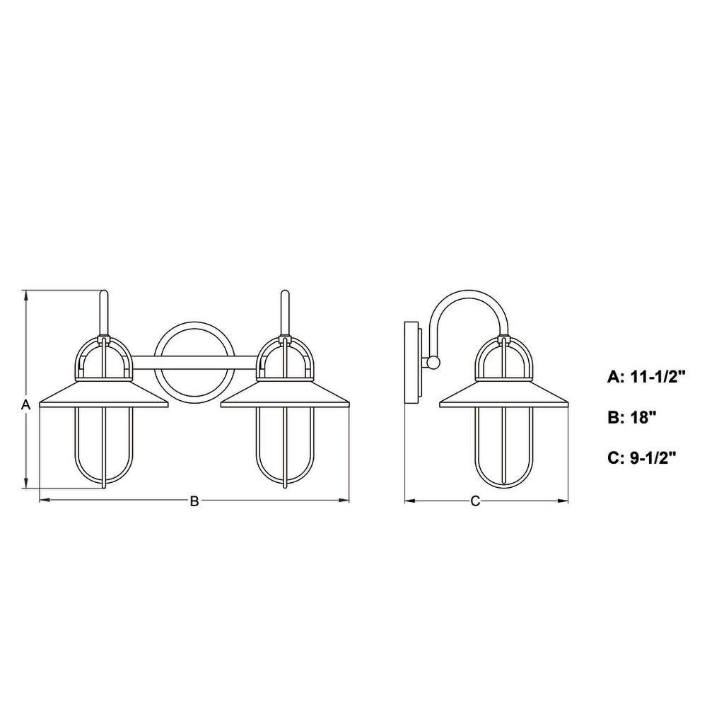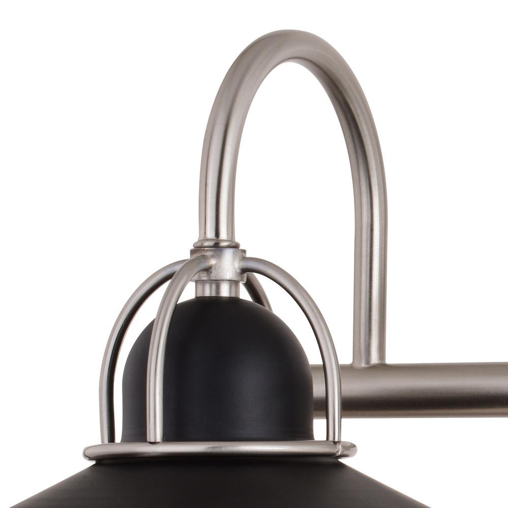 For coastal flair discover the beauty of the Galena collection. Cage-like shapes reminiscent of a ship’s hardware are sharply dressed in a matte black and satin nickel finish. The shades above suspend the downward facing bulbs allowing the best light to shine below. This 2-light vanity is ideal in any bathroom, bedroom, or kitchen.