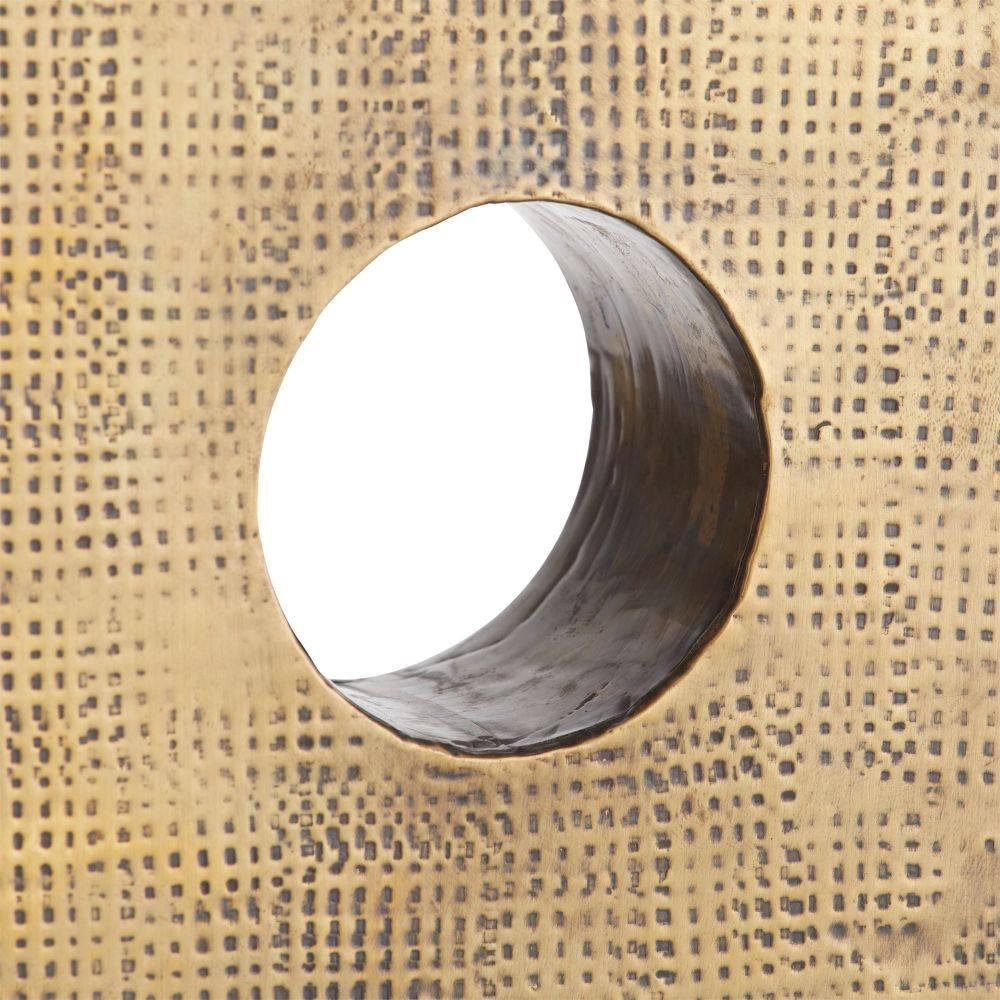 Evoking classic architectural forms, antique brass clad bookends possess a geometric texture. A single orb of jungle marble adds a playful, puzzle-like accent to one of the pair. Finish will vary.