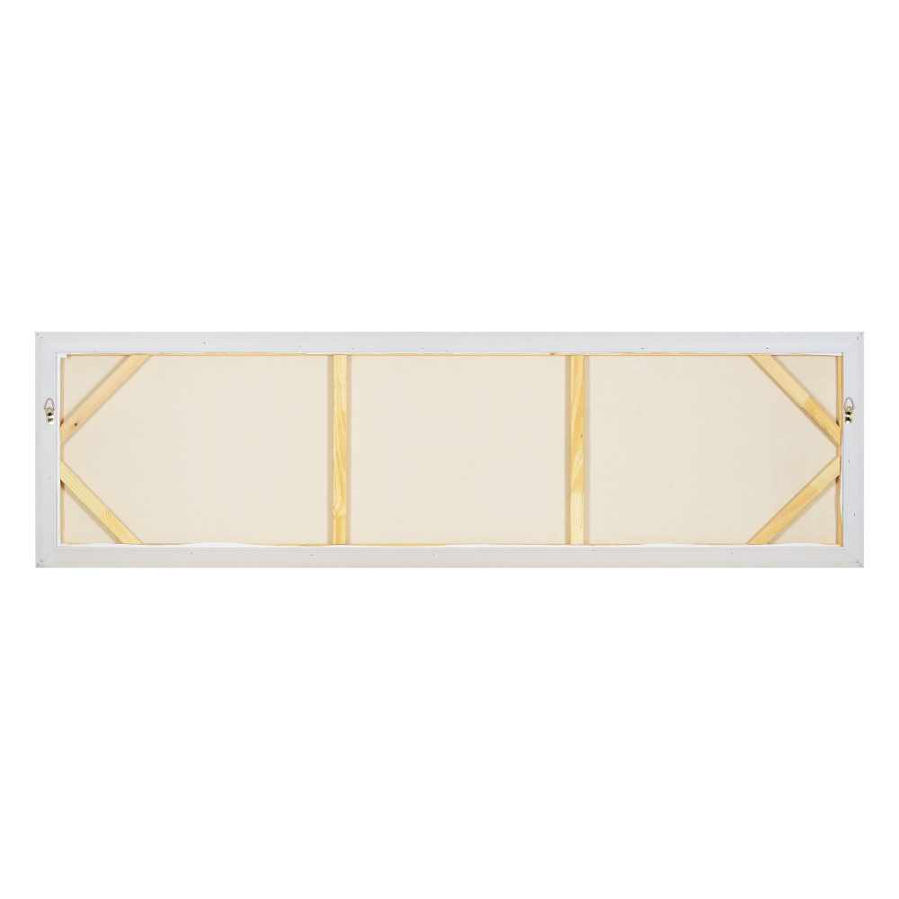 The client looking to fill a lengthy horizontal space with a captivating work of art can consider their search complete. While abstract in nature, the tones of the brush strokes in this canvas art lend it a coastal, beachy quality. Given the shape of this art painting, this piece is best hung over a bed, sofa, entryway bench or dining table in the organic, contemporary home.