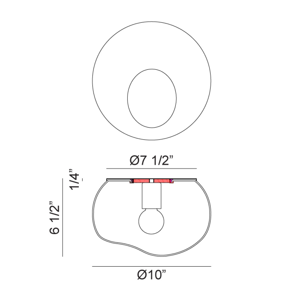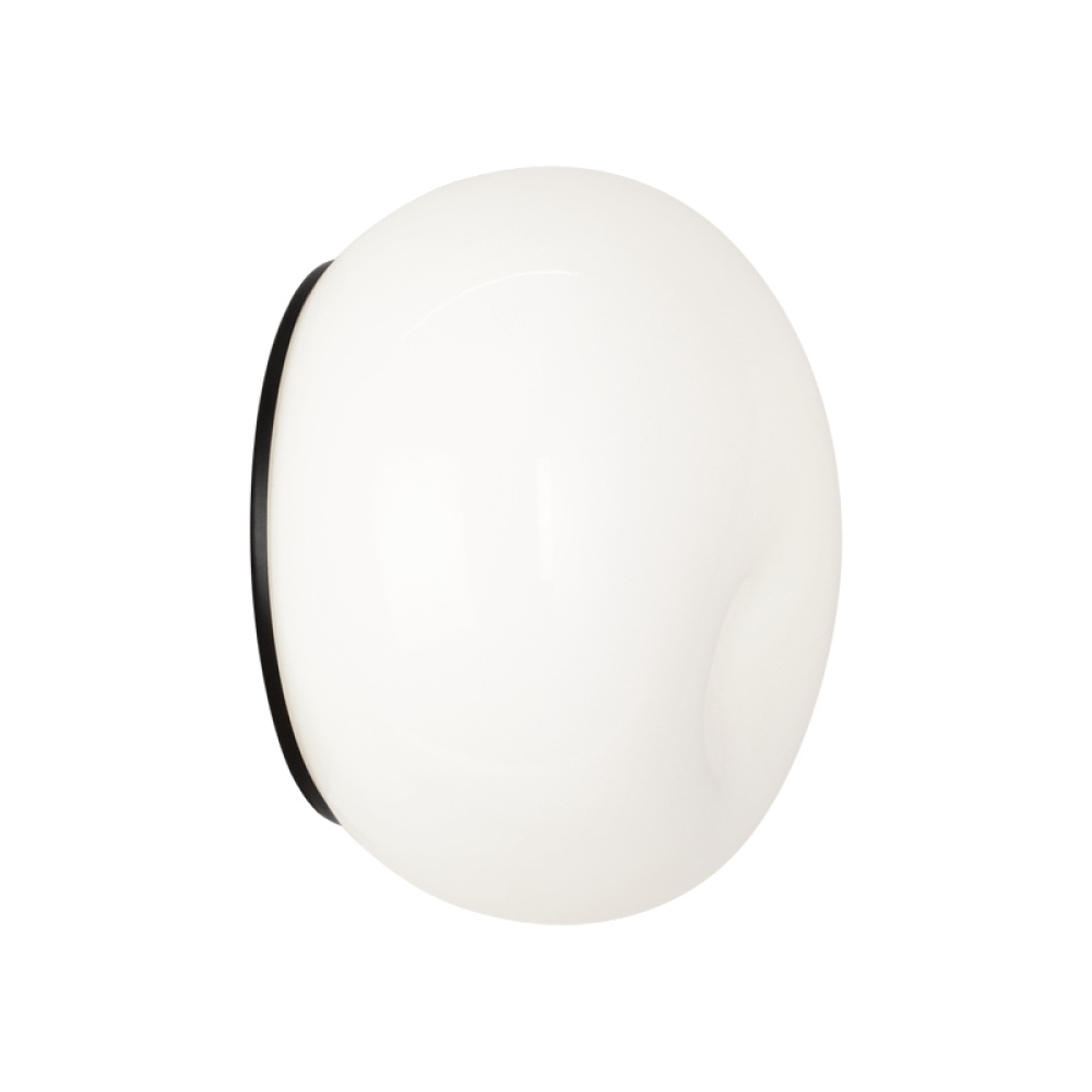 A contemporary flush mount and vanity series. Gelasin features a thin canopy attached to a hand blown Opal glass with a unique dent which adds to the aesthetics. Available in 2 sizes and 2 finishes