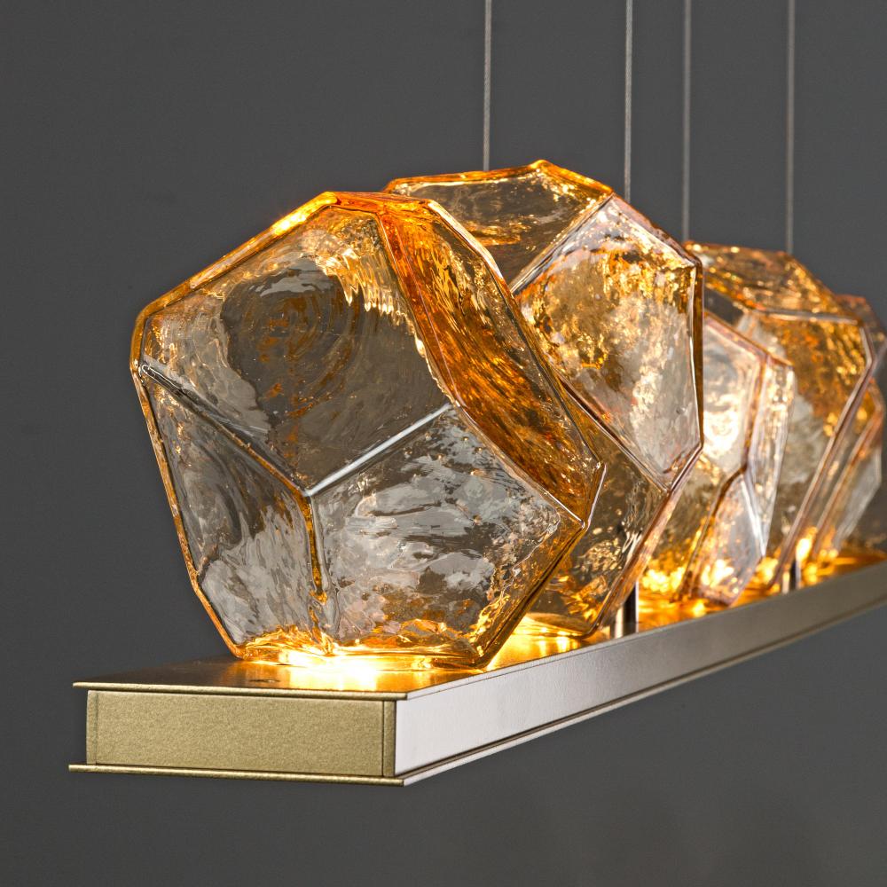 Gem Linear Suspension - 0B - Gilded Brass - Amber Blown Glass - Stainless Cable - LED - 2700K