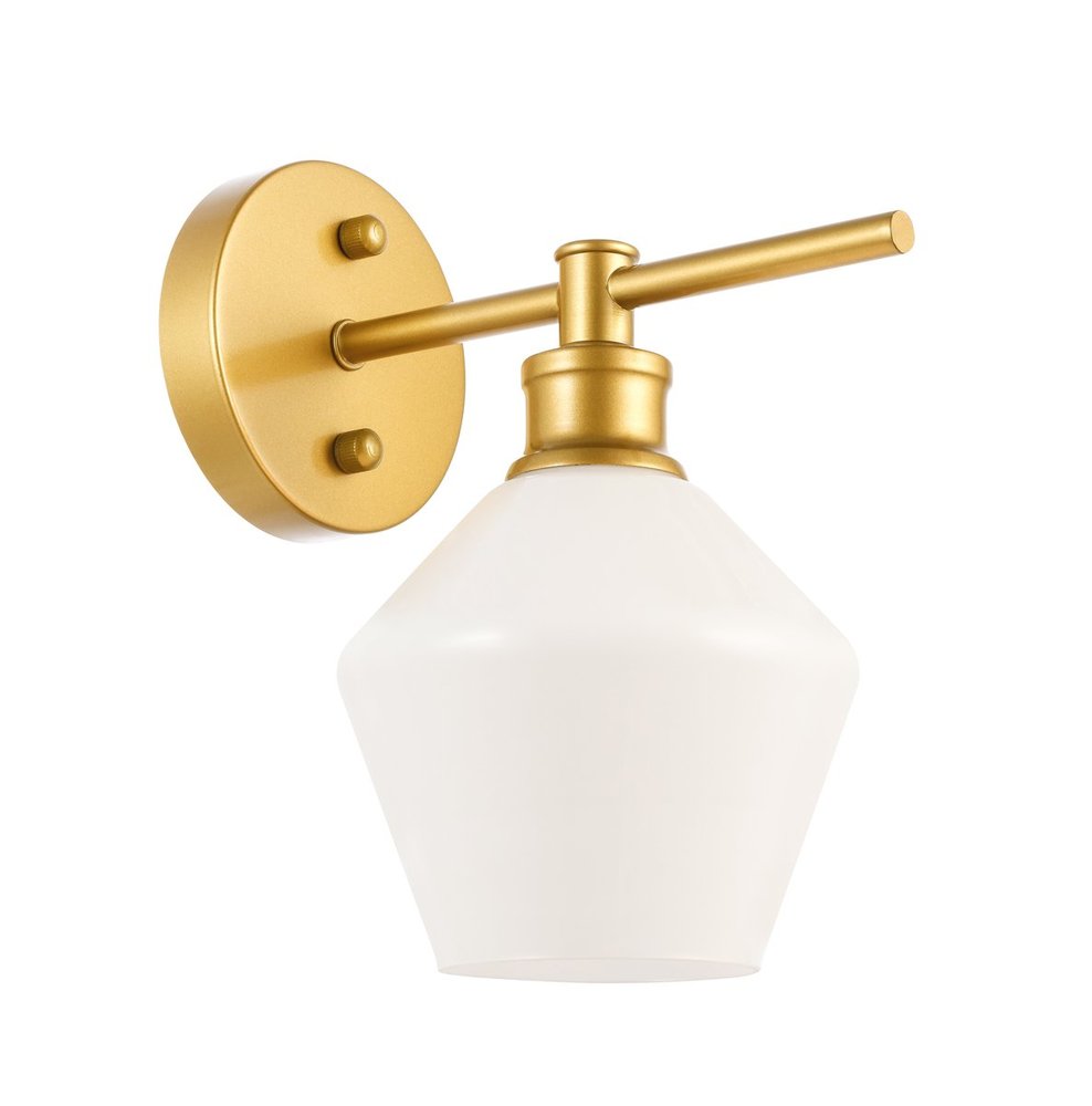 The Gene Collection of lights will be sure to have your guests admire your modern sense of style with the beautiful simplicity of its shape and form. The clean lines of the rhombus shaped shade creates the juxtaposition of intricate simplicity, achieving a style that has both form and function. This wall lamp can be oriented facing up or down, and can shine by itself or paired with another to create an even brighter illumination that will brighten any home. Available in a brass, chrome, or black finish with either a clear or frosted rhombus glass shade, it is the perfect wall lamp to enhance your bathroom, foyer, or hallways, allowing you to always live in sleek contemporary style (light bulbs not included).