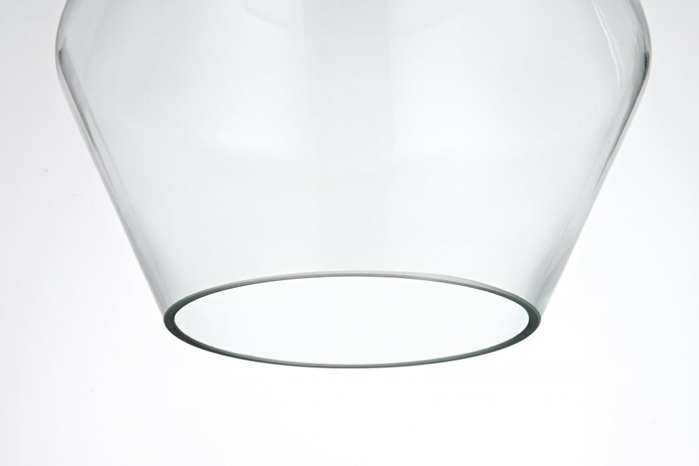 Features a clear glass shade, offering bright, unobstructed light and a clean, modern look.