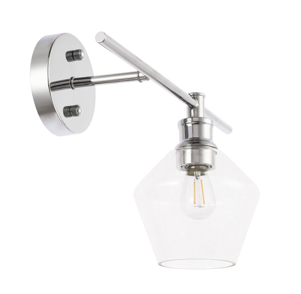 The Gene Collection of lights will be sure to have your guests admire your modern sense of style with the beautiful simplicity of its shape and form. While this wall lamp is versatile and can be oriented with the light facing up or down, its modern style will remain a constant, and its illumination will always brighten any home. Available in a brass, chrome, or black finish with either a clear or frosted rhombus glass shade, it is the perfect wall lamp to enhance your bathroom, foyer, or hallways, allowing you to always live in sleek contemporary style (light bulbs not included). Also available in either left facing or right facing configuration.