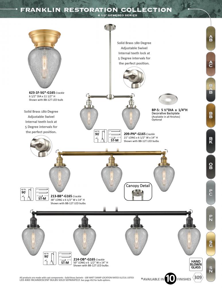 The Franklin Restoration collection is comprised of heavy cast components that give the fixture a heavy Industrial look and feel. We offer the fixture in 10 finishes with a Bare Bulb look or with over 100 possible metal and glass shade options that can cha