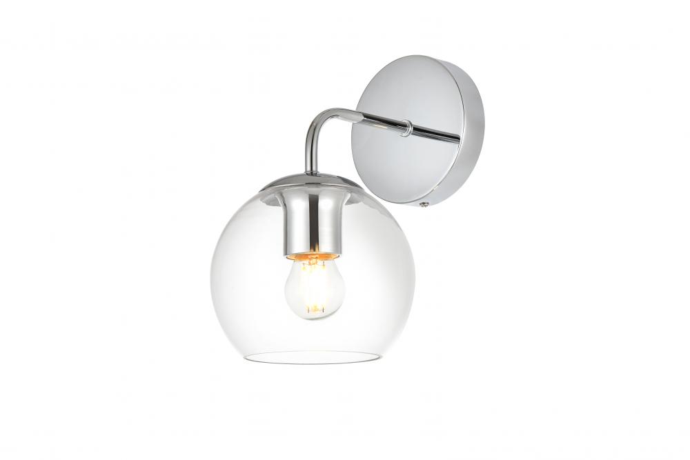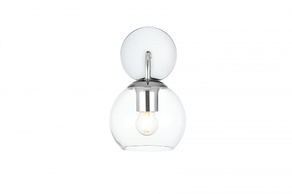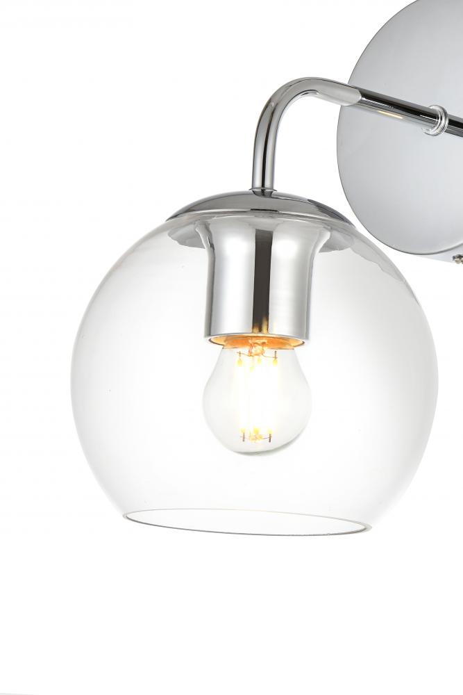 A modern twist on a traditional design, this vanity light is perfect for sprucing up your bathroom. Rated for use in damp locations, this iron fixture features a round backplate, curved arms, and orb accents. Completely versatile, you can place this wall light as an uplight or downlight. Rated for use in damp locations, this will work perfectly over a vanity in your bathroom.