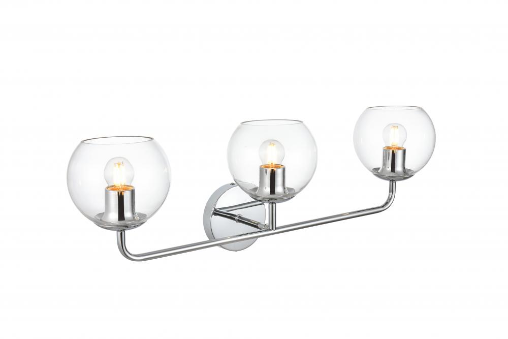 A modern twist on a traditional design, this vanity light is perfect for sprucing up your bathroom. Rated for use in damp locations, this iron fixture features a round backplate, curved arms, and orb accents. Completely versatile, you can place this wall light as an uplight or downlight. Rated for use in damp locations, this will work perfectly over a vanity in your bathroom.
