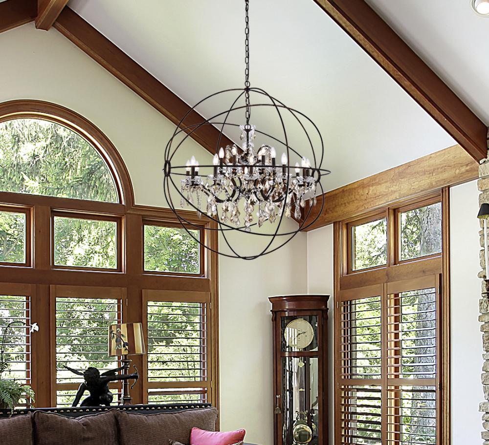 Make a statement or set the mood in your living room, dining room, or foyer with the transitional style of a Geneva chandelier. The Geneva collection is an eye-catching design that starts with the Old World feel of a classic crystal chandelier and then suspends it in a lamp body that takes on the New Age look of a gyroscope. Graceful candelabras are embellished with several sizes and layers of royal-cut crystals in clear, golden teak, or Silver shade that transform into a luminous globe when framed in a sphere finished in dark bronze, polished nickel, or rustic intent.