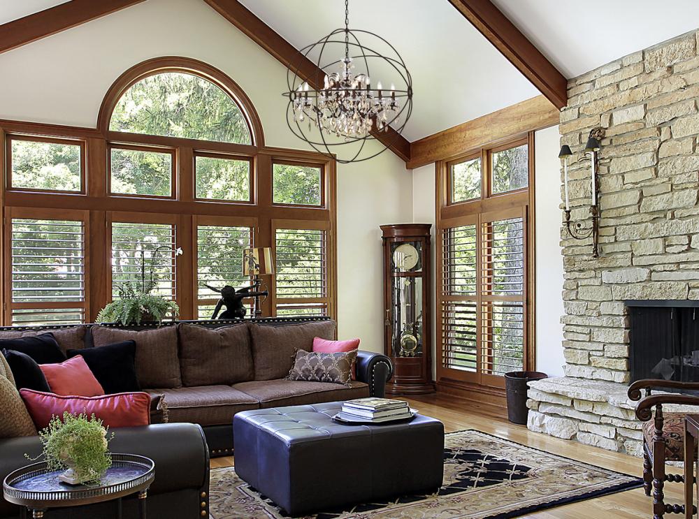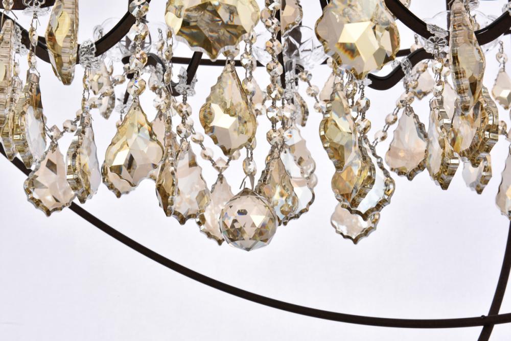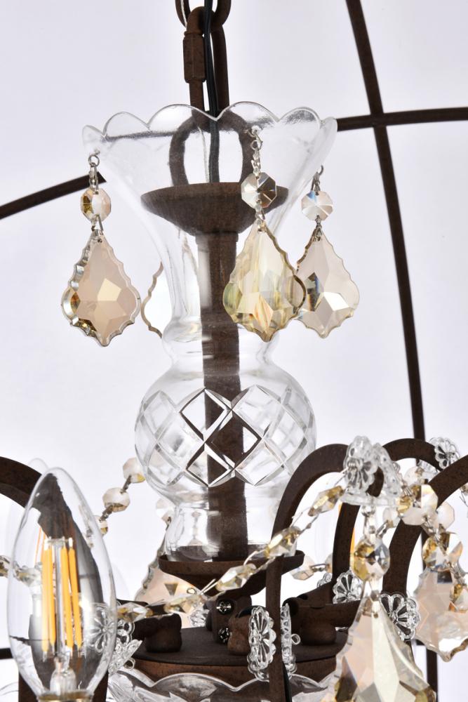 Royal-cut golden-teak crystals and 18 candelabras create a dramatic contrast with the rustic-intent finish