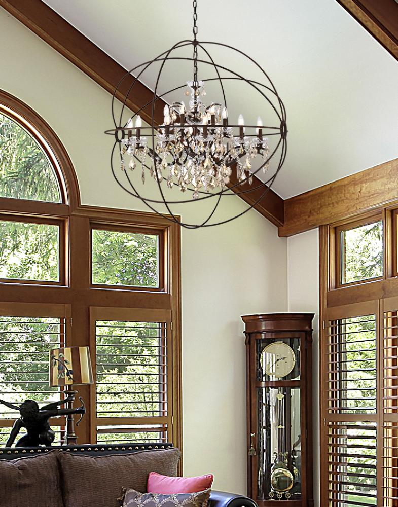 Make a statement or set the mood in your living room, dining room, or foyer with the transitional style of a Geneva chandelier. The Geneva collection is an eye-catching design that starts with the Old World feel of a classic crystal chandelier and then suspends it in a lamp body that takes on the New Age look of a gyroscope. Graceful candelabras are embellished with several sizes and layers of royal-cut crystals in clear, golden teak, or Silver shade that transform into a luminous globe when framed in a sphere finished in dark bronze, polished nickel, or rustic intent.