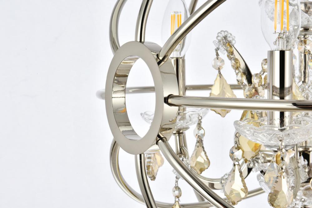 Royal-cut golden-teak crystals and four candelabras beautifully complement the polished-nickel finish