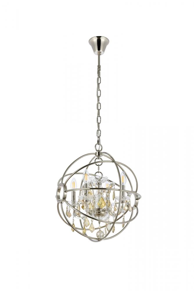 Make a statement or set the mood in your living room, dining room, or foyer with the transitional style of a Geneva chandelier. The Geneva collection is an eye-catching design that starts with the Old World feel of a classic crystal chandelier and then suspends it in a lamp body that takes on the New Age look of a gyroscope. Graceful candelabras are embellished with several sizes and layers of royal-cut crystals in clear, golden teak, or Silver shade that transform into a luminous globe when framed in a sphere finished in dark bronze, polished nickel, or rustic intent.