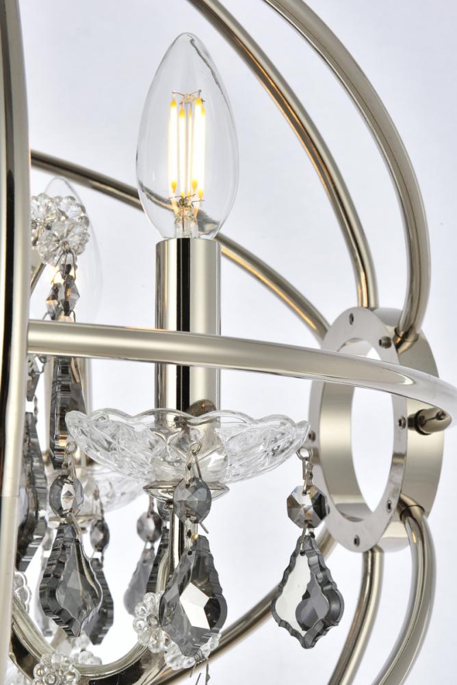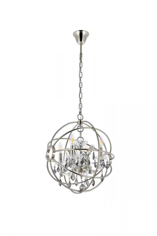 Royal-cut silver-shade crystals and four candelabras beautifully complement the polished-nickel finish