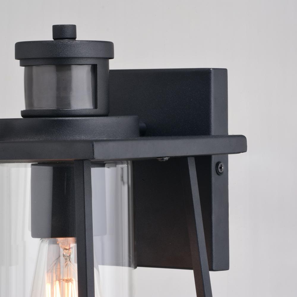 The Geneva collection is a sleek solution to accent any outdoor environment. with its tapered textured black finish and clear glass cylinder shade, this fixture is the perfect combination of transitional meets contemporary. Ideal for your porch, entryway, or any other outdoor area of your home. Dualux dual-level outdoor security lighting is designed to fit your lifestyle and enhance the beauty, safety, and usability of your home's exterior areas. Enjoy the comfort and convenience of automatic dusk-to-dawn lighting with low-level soft, ambient illumination overnight, fully brightening to high level whenever motion is detected to keep your property safe and secure. Standard on-off motion detection or full brightness dusk-to-dawn modes are also available via the EZSET controls. This fixture works with most dimmable LED bulb models. You get convenience, security, and efficiency of a security light integrated within a Dualux decorative outdoor light fixture.