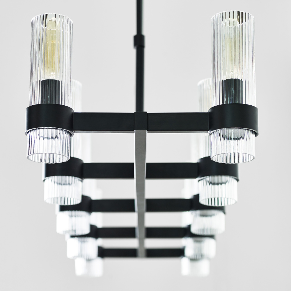 Designed by Chapman & Myers, the Geneva ten light billiard island chandelier in Aged Iron is the perfect way to achieve your desired fashion or functional needs in your home. A fluted shade forms an elegant, dynamic silhouette balanced by a strong frame of Aged Iron, Burnished Brass, or Polished Nickel.