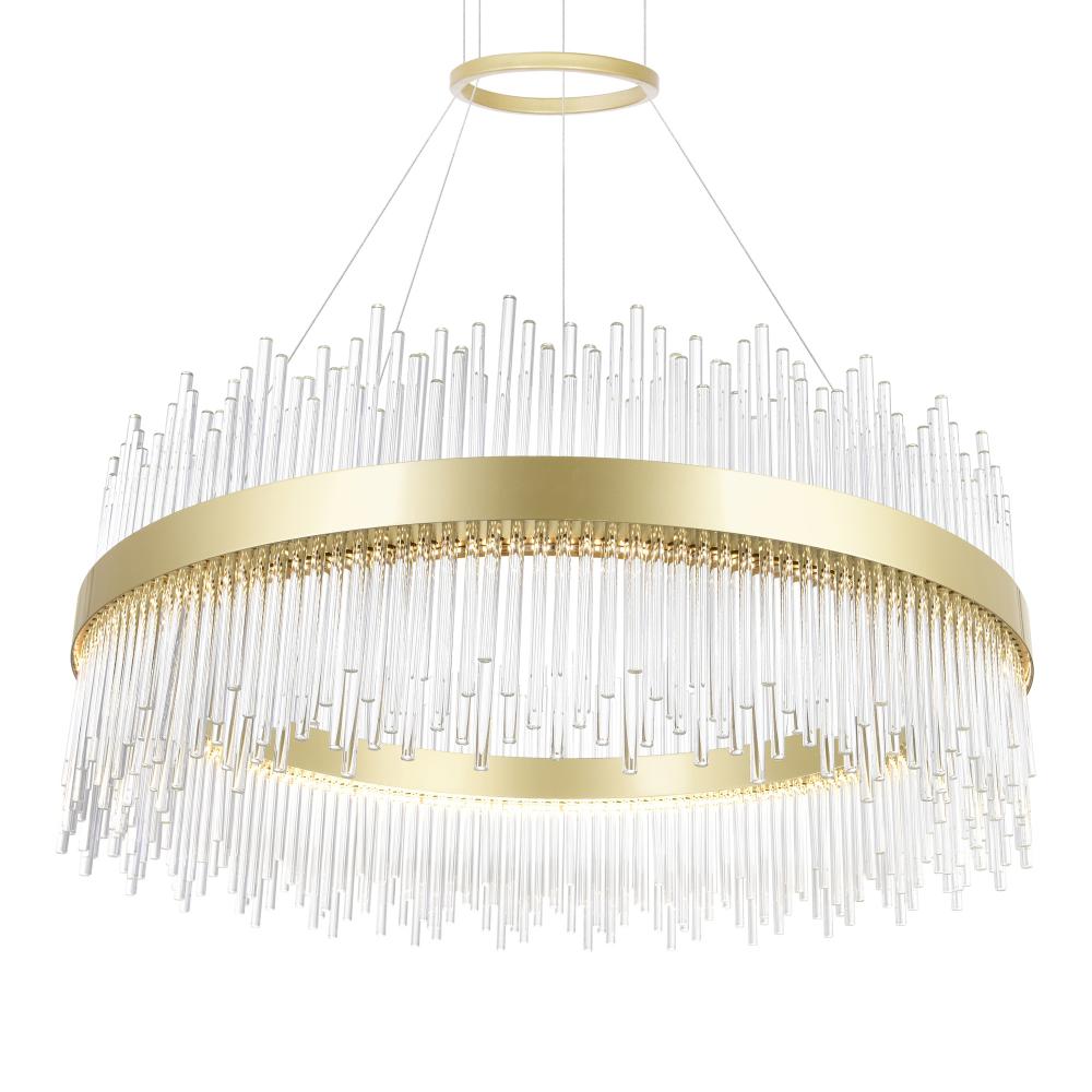 Slim clear crystal rods in varying heights make up the luxurious appeal of this Genevieve 32 inch LED Chandelier. This oversized round light fixture in medallion gold finish will give your home a seamless blend of brilliance and style. Best paired with a t