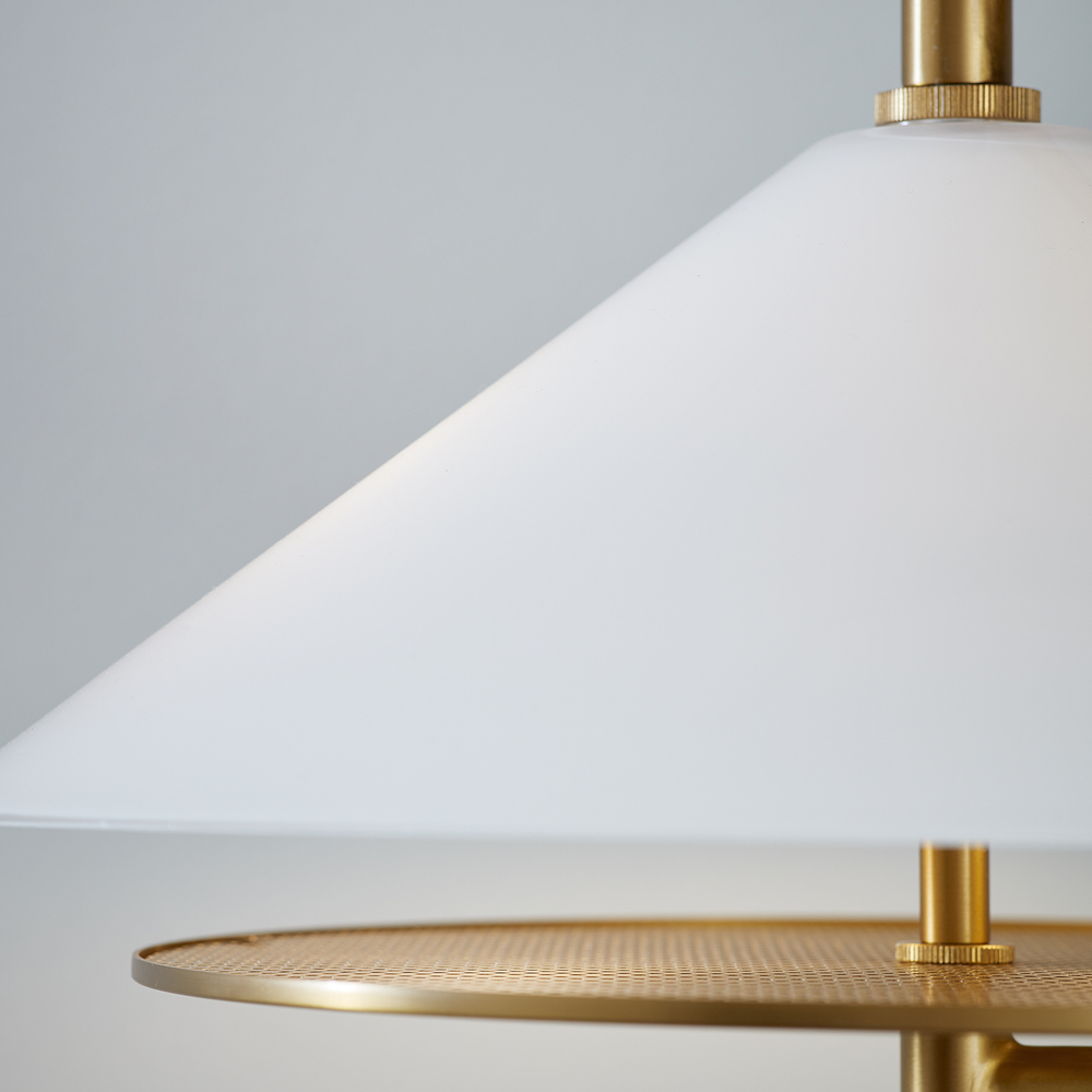 Assortment includes a tall pendant, wide pendant, floor lamp, table lamp and one-light wall sconce