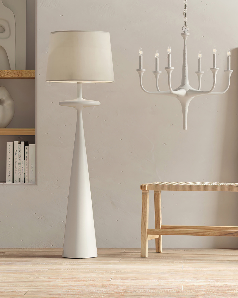 Like a Futurist work of art, the Giacomo Floor Lamp reads as much like a contemporary sculpture as it does a luminary. Made of cast aluminum in a gesso white finish, this white floor lamp is one of our products that comes out of artisanal foundries where aluminum is poured into molds and cooled. Once formed, the shapes are among the sturdiest profiles offered in home furnishings. Introduce the Giacomo to a mid-century modern interior and watch it sing!