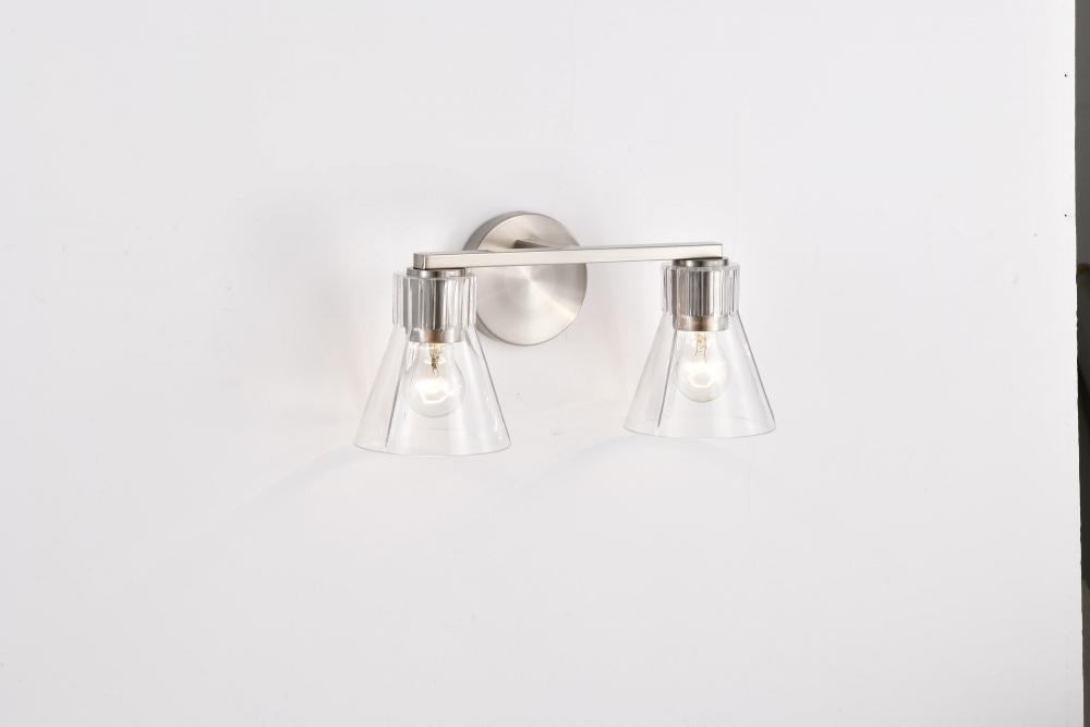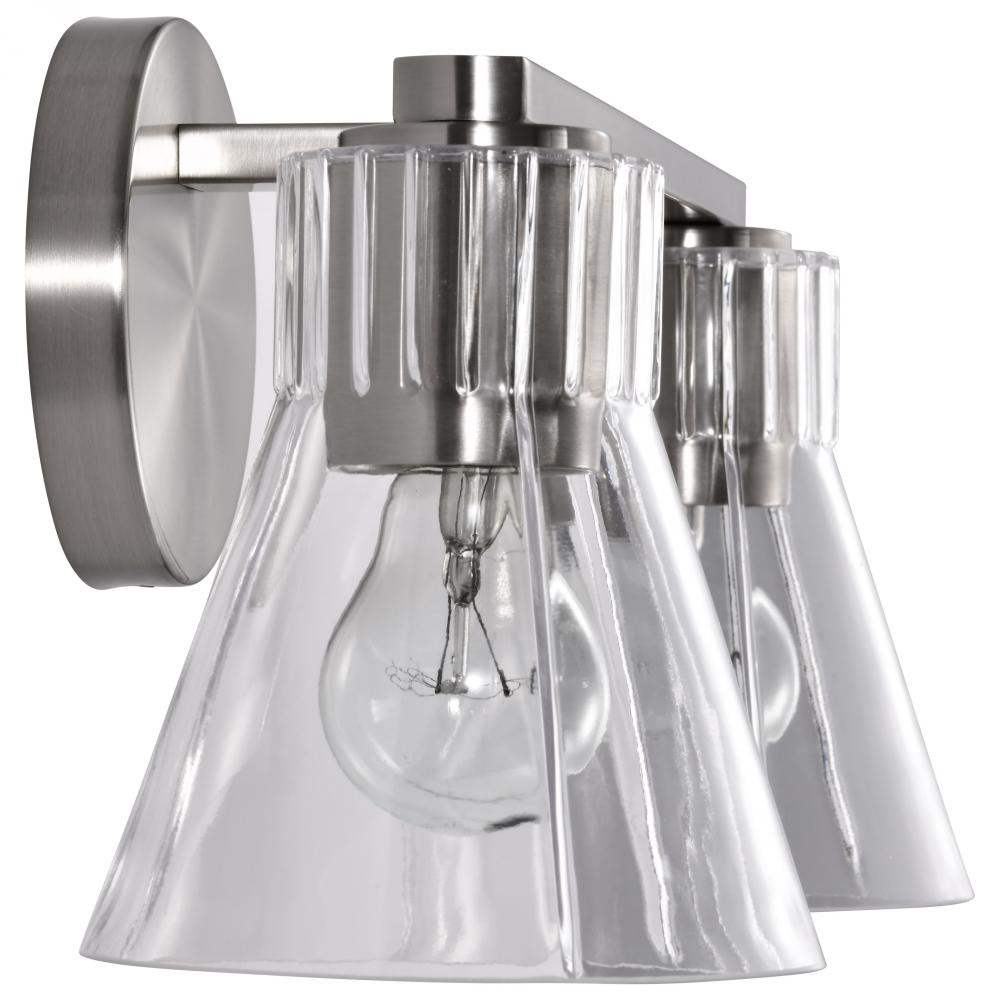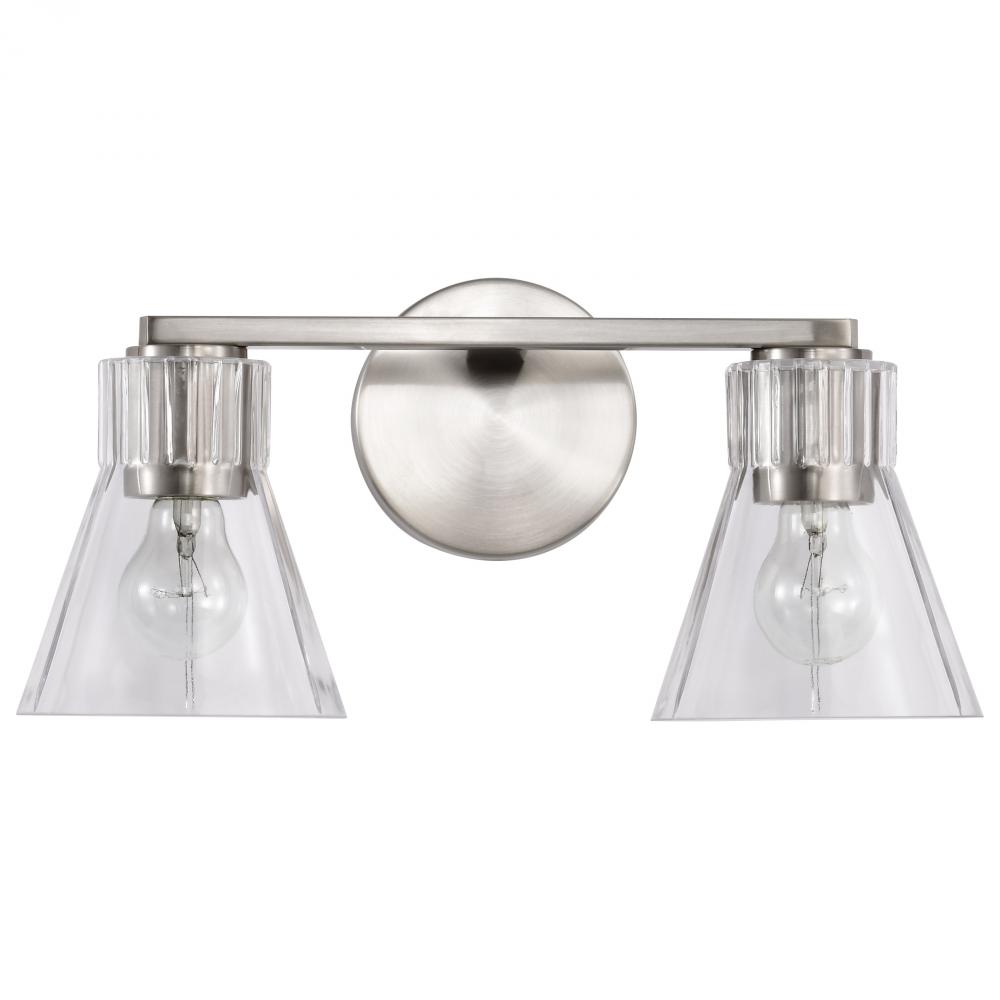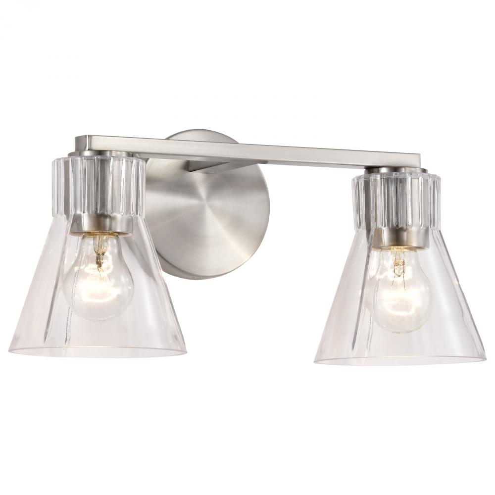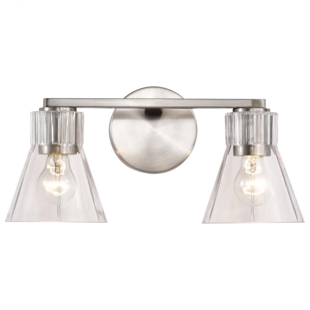 Gianna; 2 Light Vanity; Brushed Nickel Finish; Clear Glass