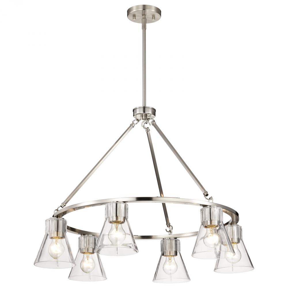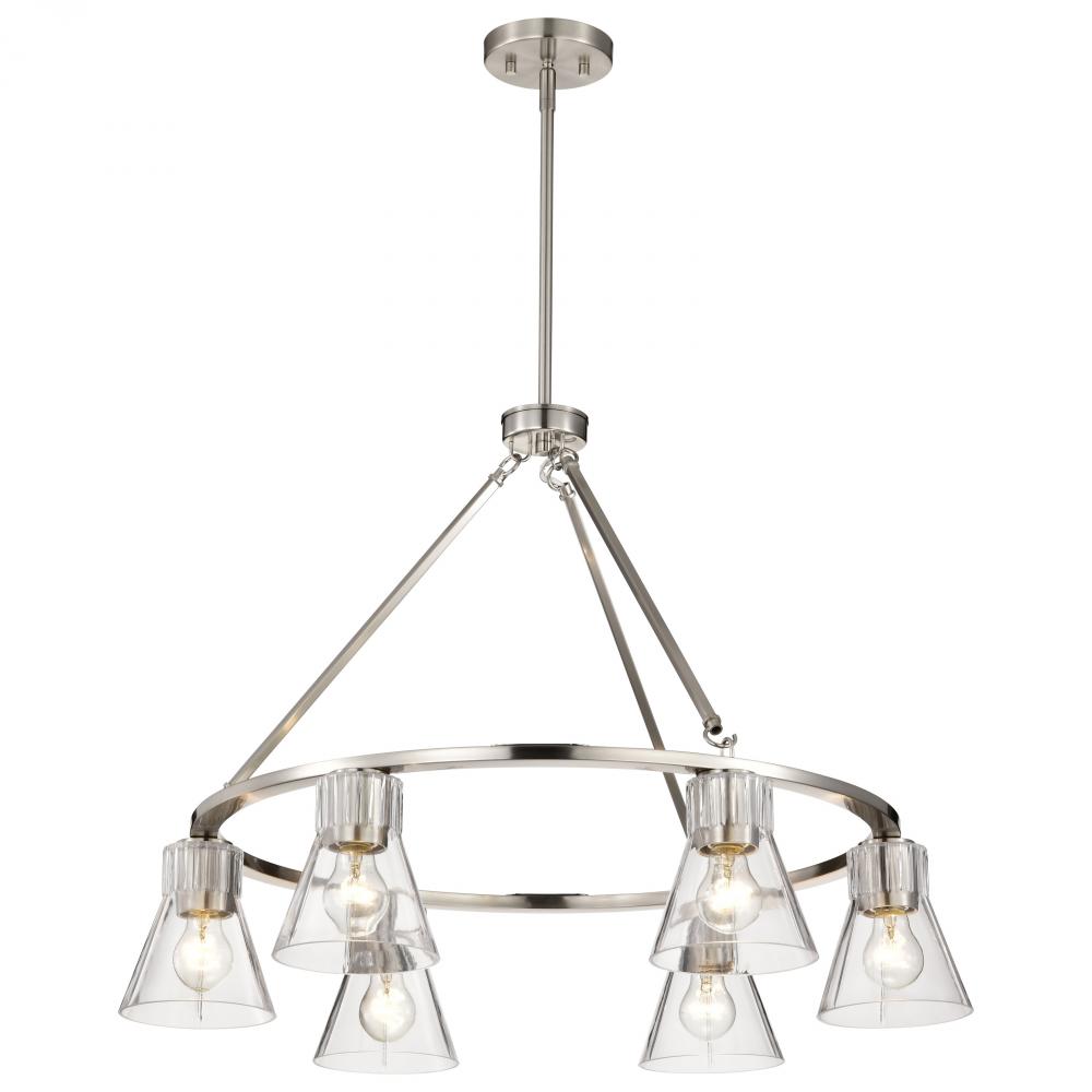 Gianna; 6 Light Chandelier; Brushed Nickel Finish; Clear Glass