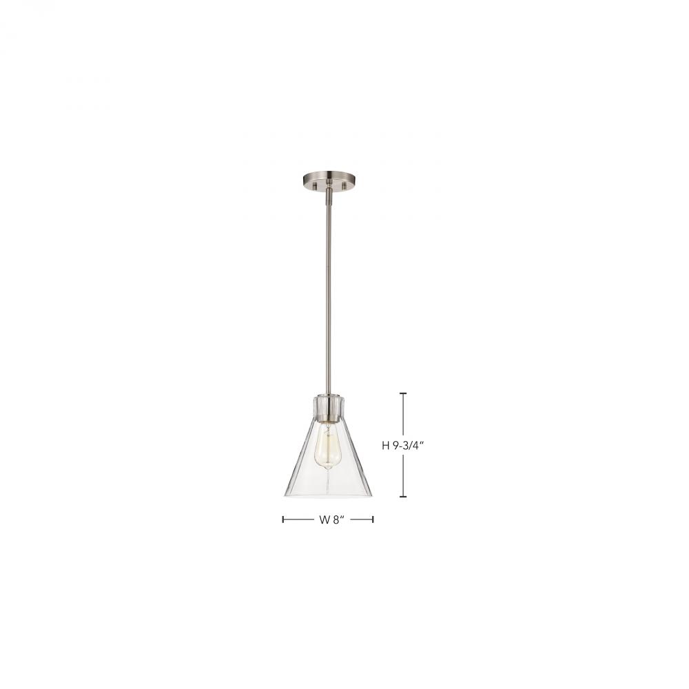 Gianna; Mini Pendant; Brushed Nickel Finish; Clear Glass