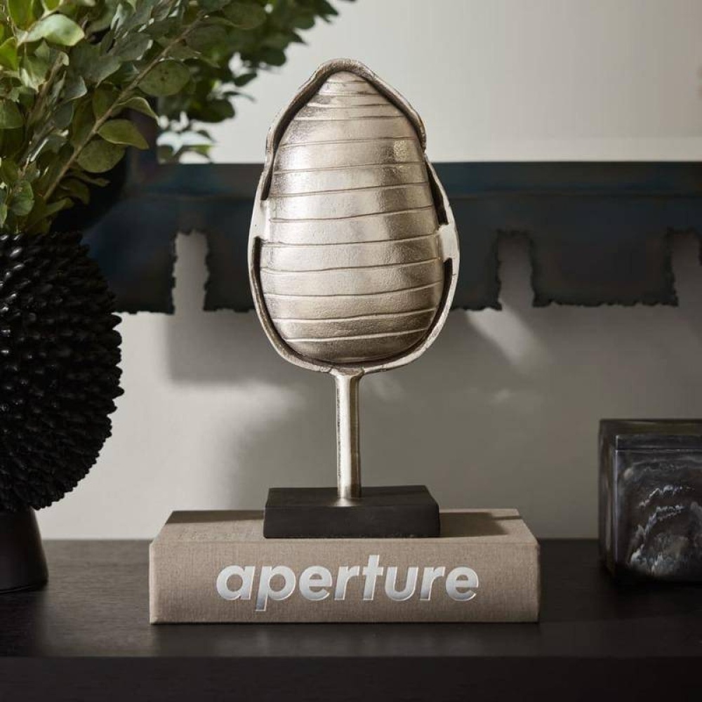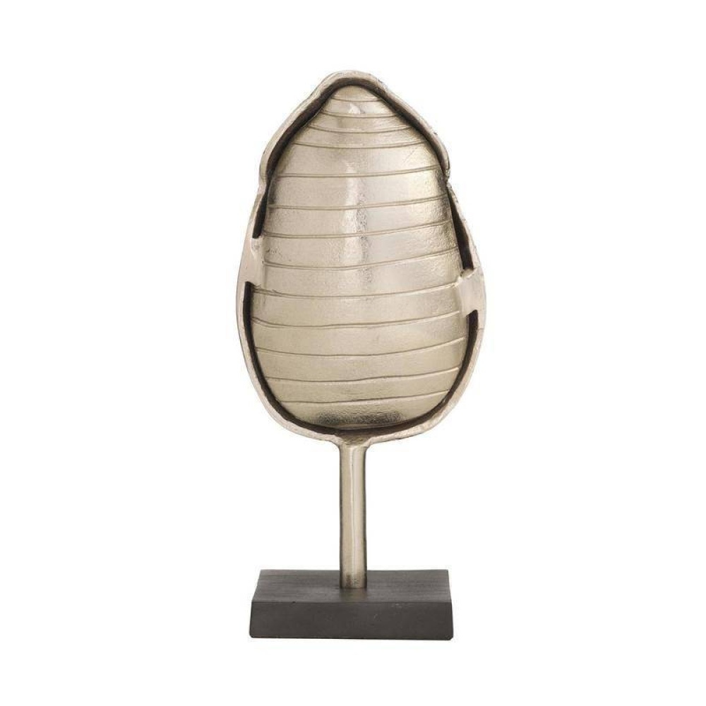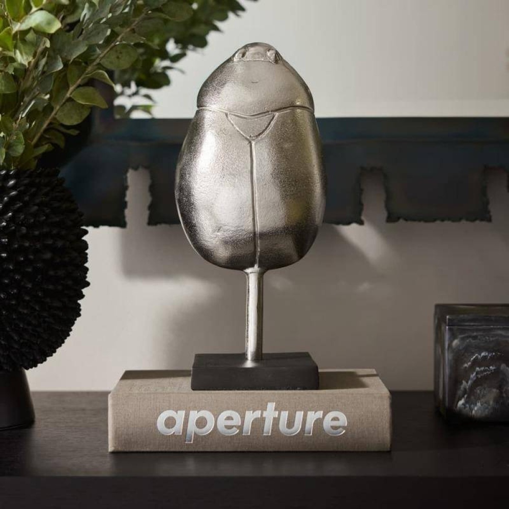 The jewel scarab of Costa Rica inspired a beetle-shaped sculpture of vintage silver-finished brass. Mounted on a square base of natural iron, the Gita is a stylish addition to a modern wunderkammer. Finish will vary.
