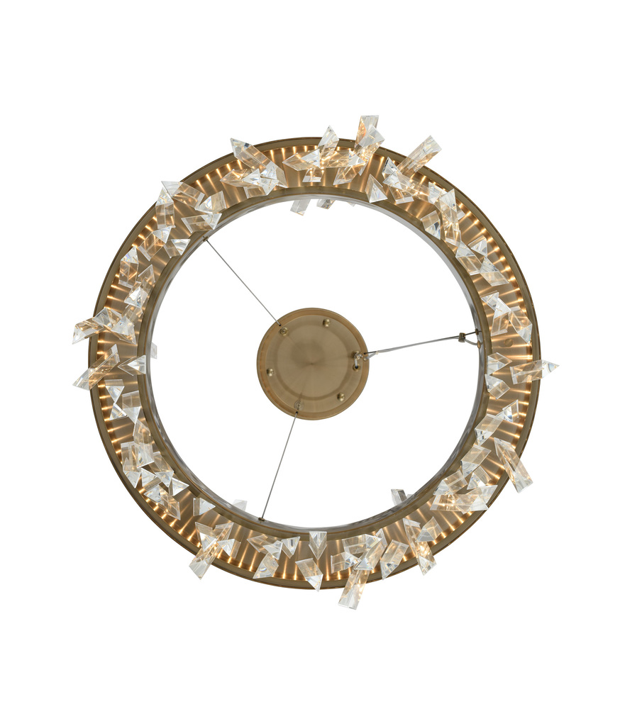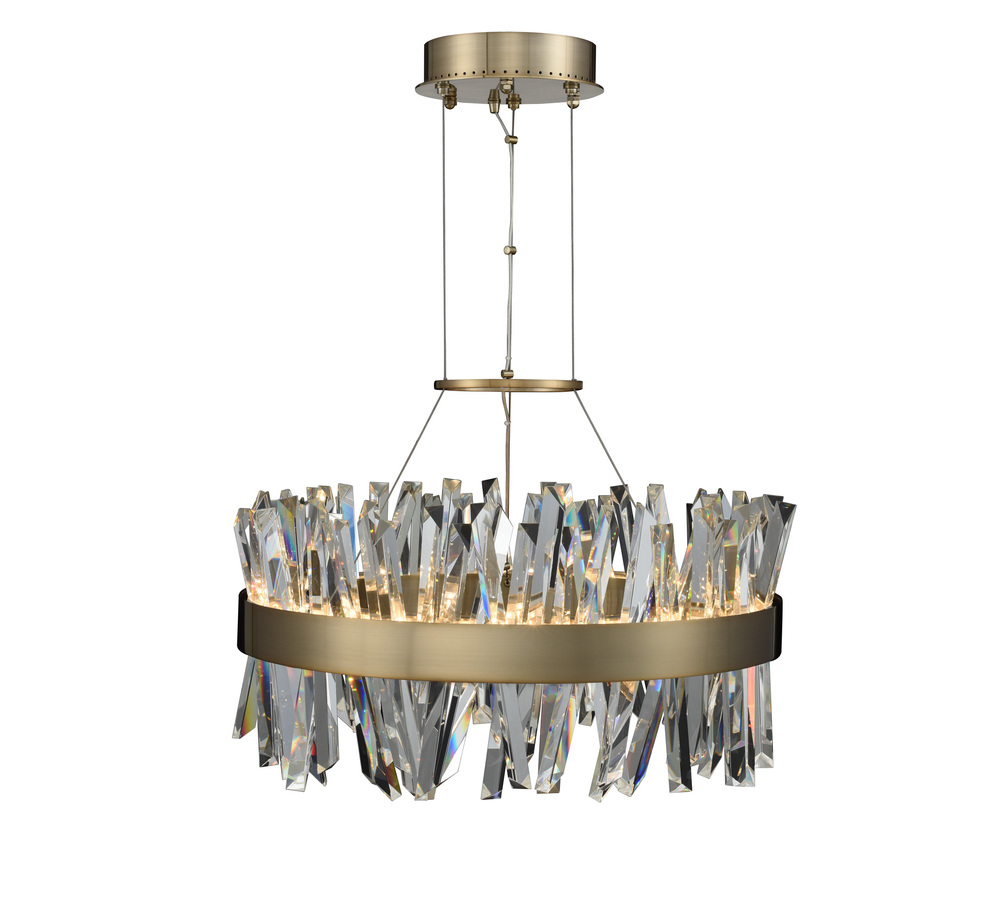 Glacier is the only way to describe this eye catching series. Polished Chrome or Brushed Champagne Gold frames are backlit by LED Lighting and spears of Ice Shaped Crystals which make this one of the unique light forms in the market. Available in Polished Chrome, Matte Black, and Brushed Champagne Gold.