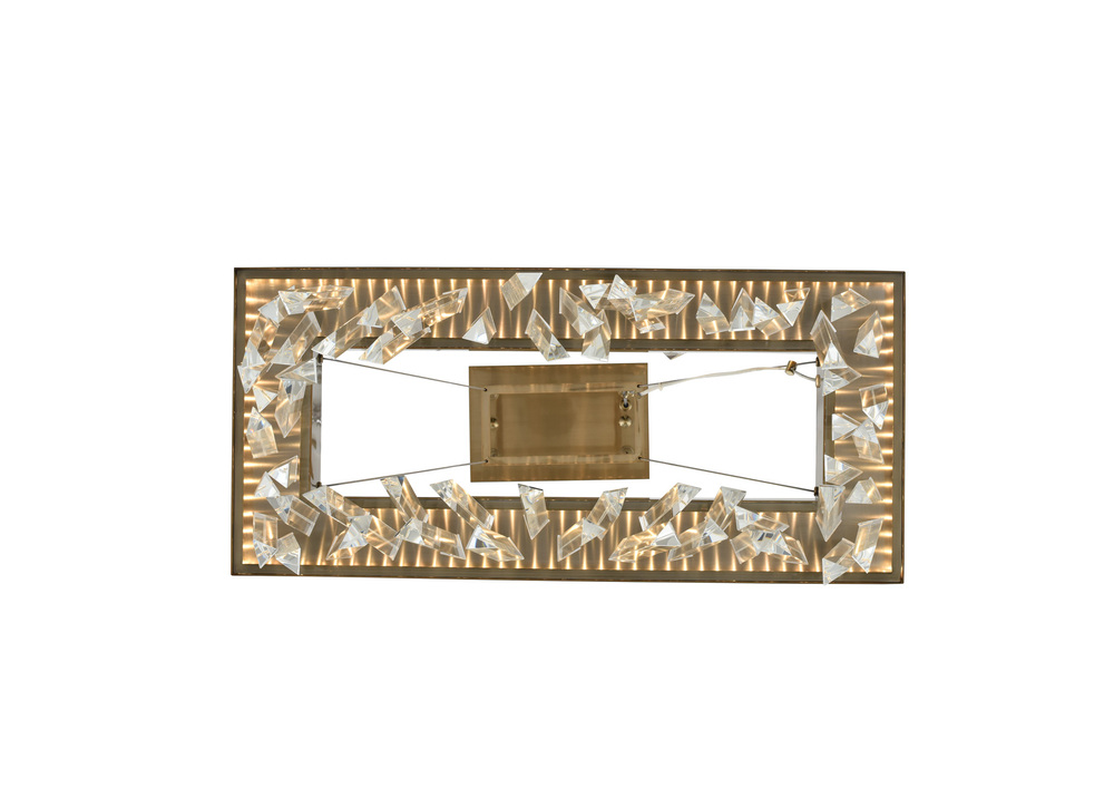 Glacier is the only way to describe this eye catching series. Polished Chrome or Brushed Champagne Gold frames are backlit by LED Lighting and spears of Ice Shaped Crystals which make this one of the unique light forms in the market.