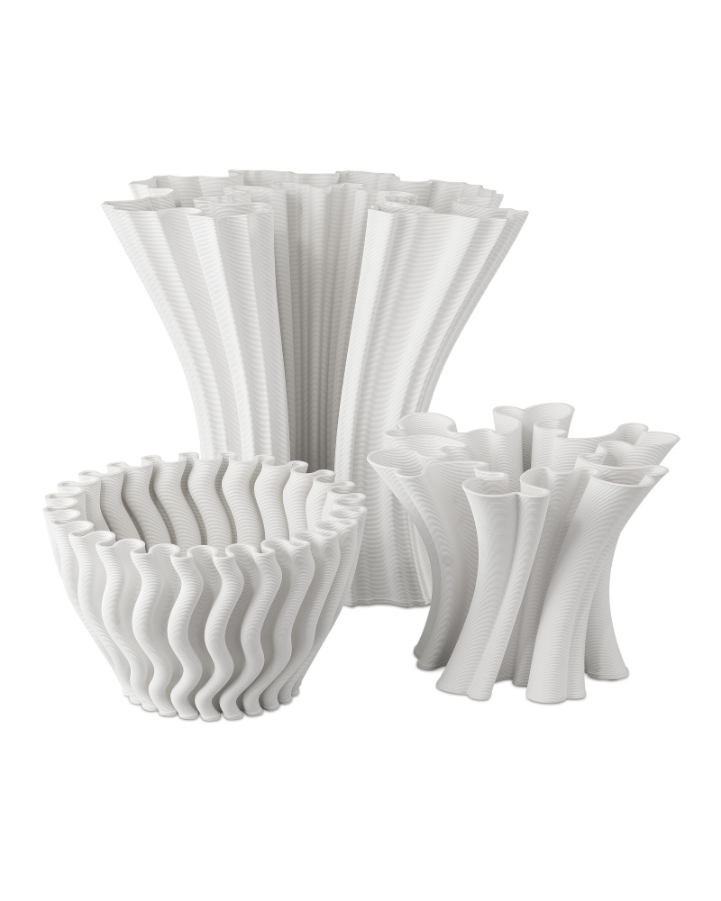 The Godet Twist White Vase is a technological feat. The deep furrows that wrinkle around the form to create waves of movement are achieved with such a uniformity they can only be machine-made. The most surprising thing about this handsome vessel is that it is made of 3D-printed porcelain, an ancient material you might not expect to be so amenable to such a modern process.