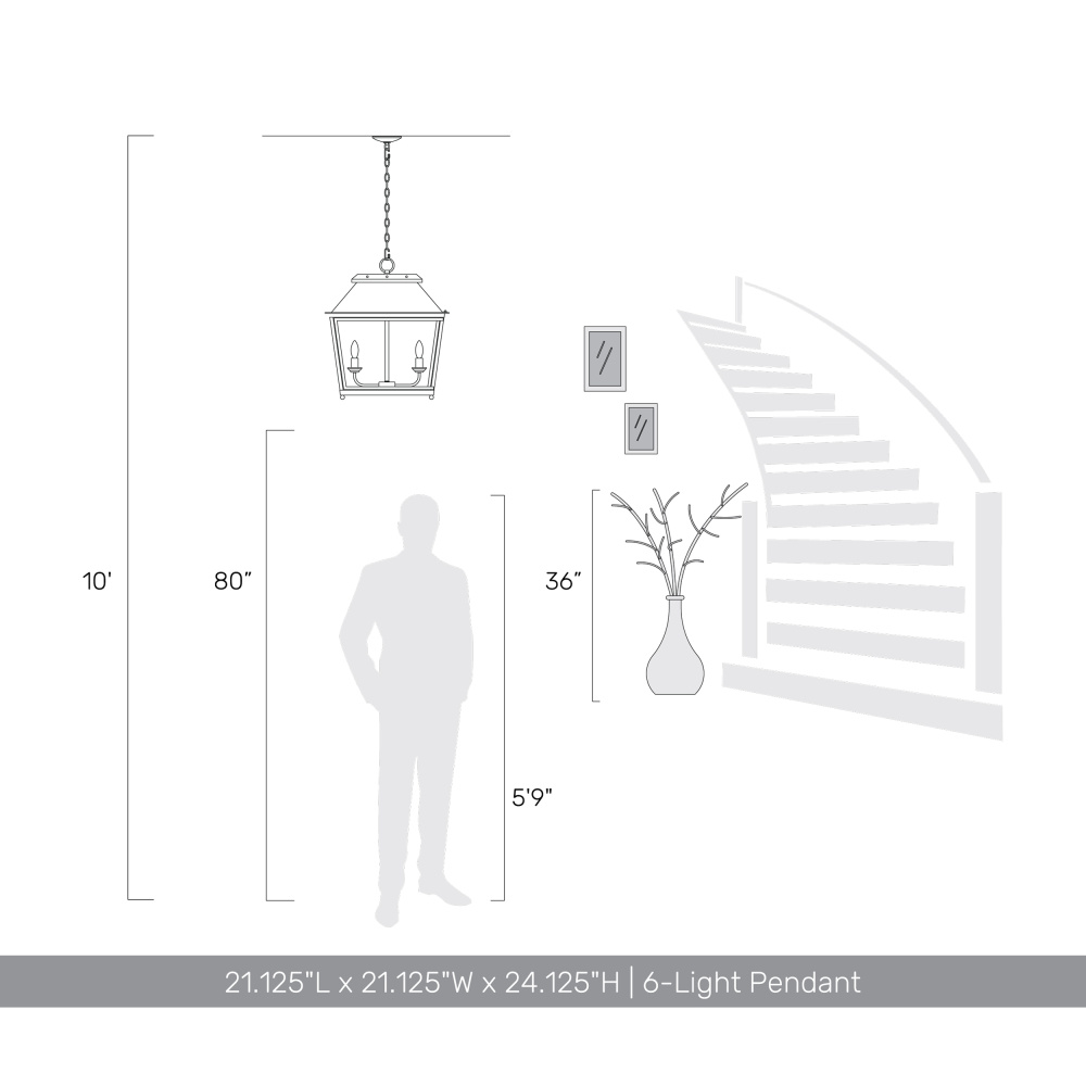 Bring sophisticated Farmhouse elegance into your home with the Golden Lighting Abingdon 6-light Pendant in Antique Ivory. Featuring a glass shade and an Antique Ivory frame, it creates a warm and inviting atmosphere. The clear glass shade provides brilliant, unobstructed light, polished to a high-gloss shine, showcasing the beauty of the bulbs within. Evoking the charm of a treasured European heirloom, the Antique Ivory finish offers rich character through its beautifully distressed and aged surface. Designed for dry locations, this pendant is perfect for indoor spaces like bedrooms, dining areas, or living rooms. It's easy to install on sloped ceilings and adjust the hanging length, with an adjustable height of 27.625" to 101.125". Its overall dimensions are 21.13"W x 24.13"H x 21.13"D, requiring six E12 Candelabra base bulbs (not included), with a maximum wattage of 60 per bulb. Close with lifestyle appeal and a focus on the artisanal craftsmanship, making it a standout addition to your home decor.