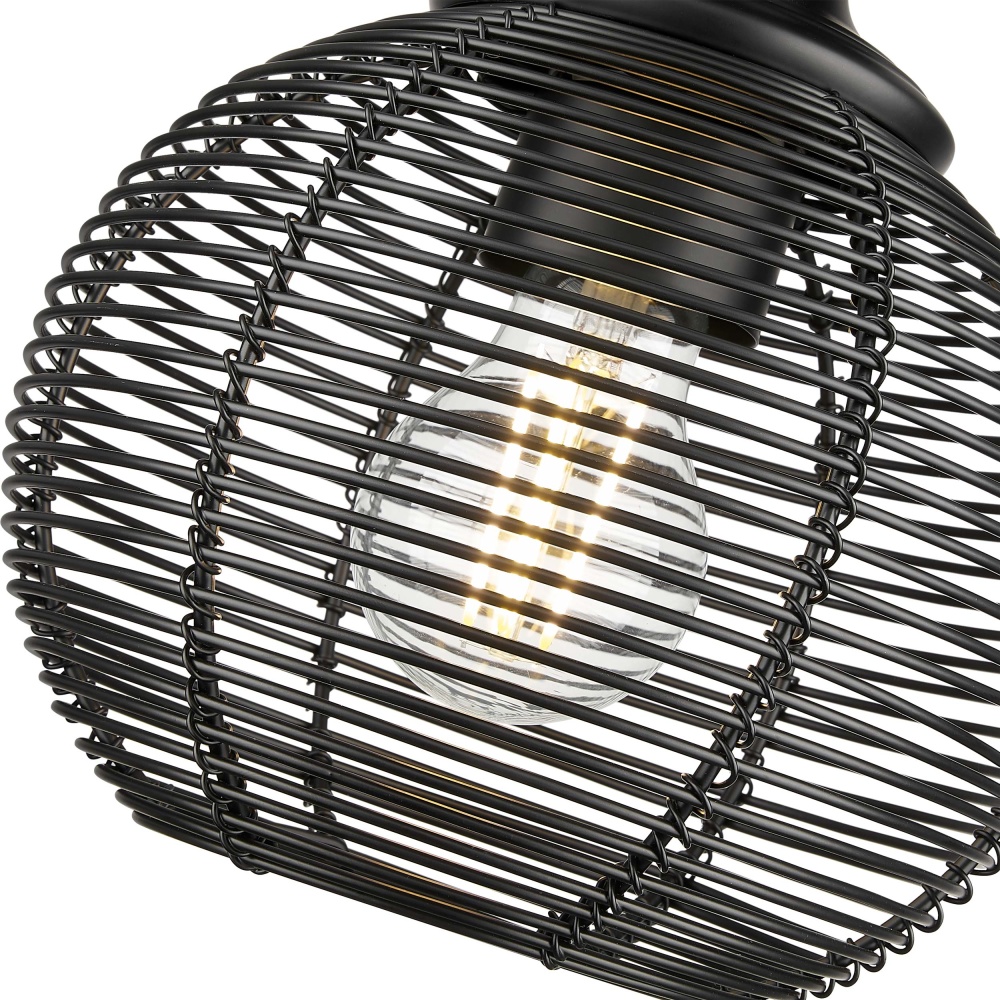 Bring industrial elegance into your home with the Golden Lighting Calypso 1-light Semi-Flush Mount. Featuring a metal shade and a Matte Black frame, it creates a welcoming atmosphere. The metal shade emphasizes a full wire mesh cage design, presenting a chic and authentic industrial vibe. The matte black finish provides a smooth surface that effortlessly complements a variety of decors. Perfect for entryways, bedrooms, and living areas with mid-height ceilings, this fixture is damp location rated—ideal for rooms with occasional moisture. Requires 1 E26 Medium base bulb (not included), max wattage of 60. Dimensions: Overall Dimensions: 7.63"W x 8.88"H x 7.63"D. Experience sophisticated lighting that melds style and practicality in your home.