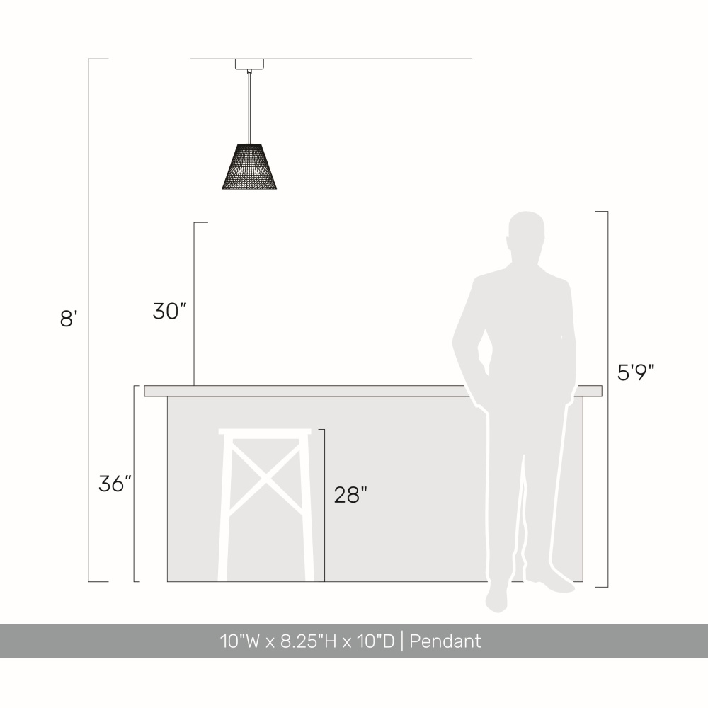 Bring a sense of calm and modern elegance into your home with the Golden Lighting Clarus 10in Integrated LED Pendant in White Sandstone Cement. Featuring a cement shade and a matte black frame, this pendant light embodies sleek sophistication. The white sandstone cement shade exudes organic beauty and presents an authentic texture that is both soft and sophisticated. Its matte surface complements the light, creating a warm and inviting ambiance. The timeless matte black finish enhances versatility, making it a perfect fit for various decor styles. This fixture is damp location rated, ideal for areas like entryways, kitchens, and dining rooms, where a hint of style and quality lighting is essential. Easily adjustable in height from 9.875" to 129.875", this pendant is also compatible with sloped ceilings for versatility in installation. Integrated LED technology offers brilliant illumination with 550 lumens, plus the ability to choose between three color temperatures for customized lighting. Overall dimensions of 10"W x 8.13"H x 10"D ensure it becomes a striking feature in your space, providing both functionality and aesthetic appeal.