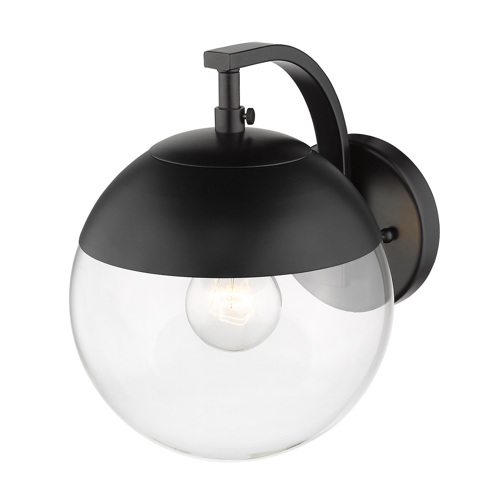 Bring Mid-Century Modern elegance into your home with the Golden Lighting Dixon 1-light Wall Sconce. Featuring a glass shade and a Matte Black frame, it creates a welcoming atmosphere. The clear glass shade offers brilliant, unobstructed light, perfectly complementing the eye-catching design. Experience the epitome of clean style with our Matte Black finish, which embodies timeless sophistication and matches various decor styles. This wall sconce is damp location rated, suitable for areas with occasional moisture like bathrooms and covered porches. Overall Dimensions: 7.75"W x 9.88"H x 9.63"D, Requires 1 E26 Medium base bulb (not included) with a maximum wattage of 60. Enhance your interiors with this versatile piece that echoes a playful spirit of retro lighting.