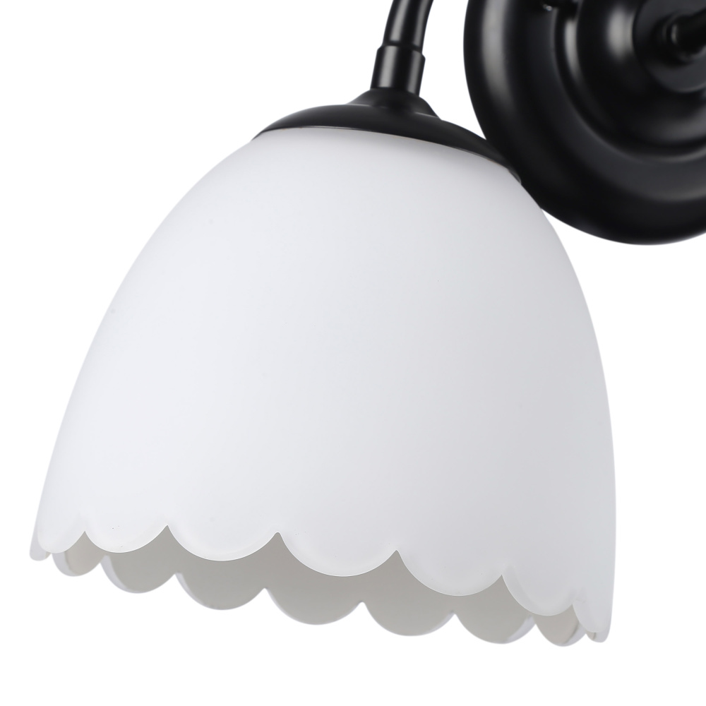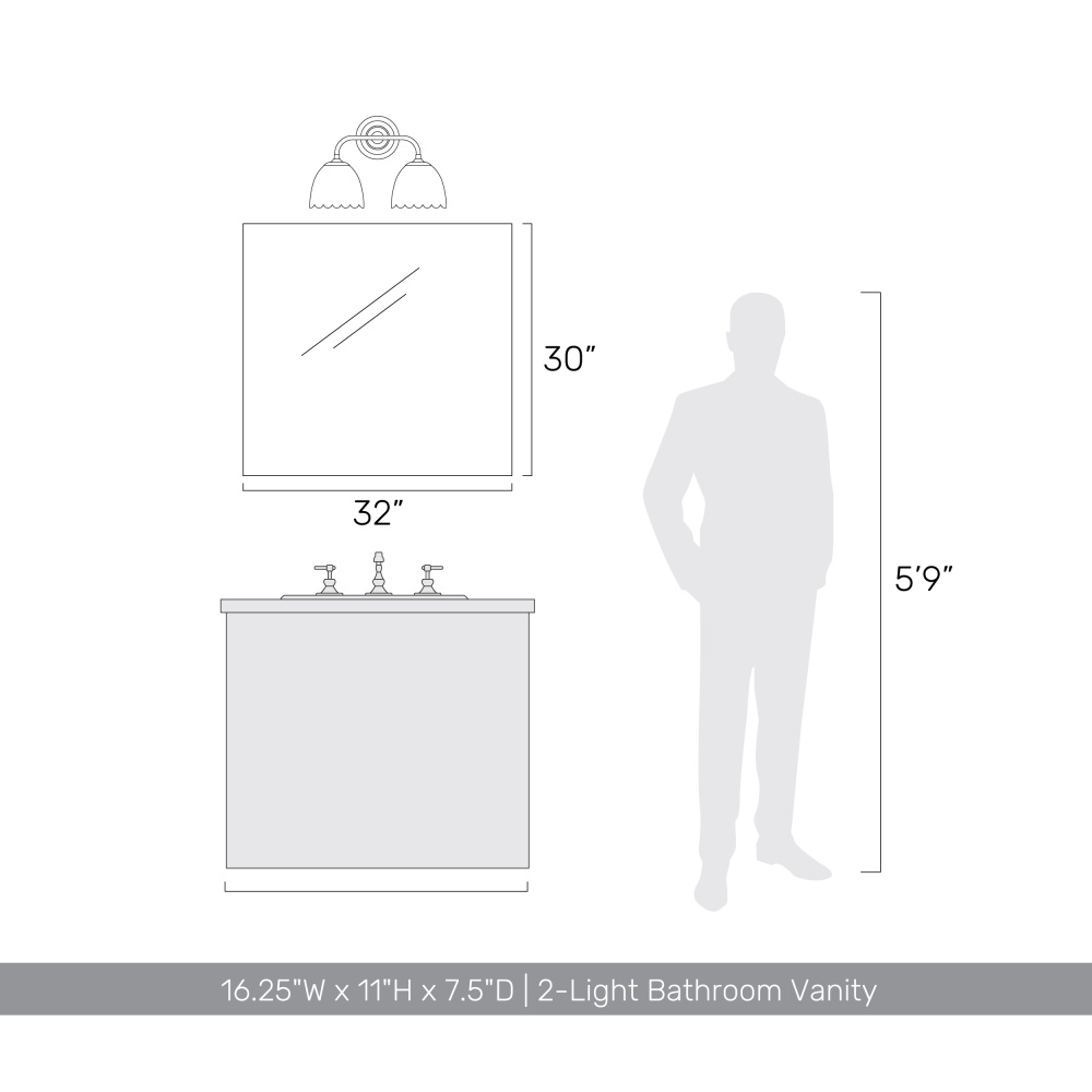 Bring transitional elegance into your home with the Golden Lighting Dorinda 2-light Vanity in Matte Black. Featuring a glass shade and a matte black frame, it creates a welcoming atmosphere. The opal glass shade is designed to diffuse light evenly, providing a soft, glare-free glow. Its timeless design pairs perfectly with the deep, uniform black color of the finish, making it a versatile addition to various decors. Ideal for bathrooms, this vanity light is damp location rated, suitable for covered and semi-enclosed spaces, like bathrooms and laundry rooms. Requires 2 E26 medium base bulbs (not included) with a maximum wattage of 100. Overall dimensions are 16.25"W x 11"H x 7.5"D. Elevate your space with quality lighting that enhances aesthetics and functionality.