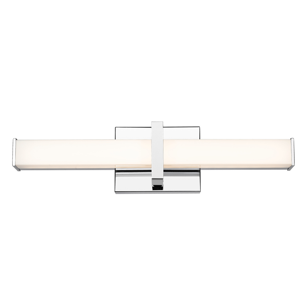 Bring modern elegance into your home with the Golden Lighting Elon Integrated LED 19in Vanity in Chrome. Featuring an acrylic shade and a polished chrome frame, it creates a welcoming atmosphere. This acrylic shade is beautifully designed to diffuse light evenly for a soft, glare-free glow, perfectly suited for any contemporary space. The polished chrome finish reflects light beautifully, adding a touch of sophistication and maximizing brightness in your bathroom. Damp Location Rated, it is suitable for covered and semi-enclosed spaces like bathrooms and laundry rooms. Experience an energy-efficient lighting solution with integrated LED technology providing 1750 lumens. Overall Dimensions: 19"W x 4.75"H x 3.75"D. Elevate your bathroom with functional style and the exceptional quality of Golden Lighting.