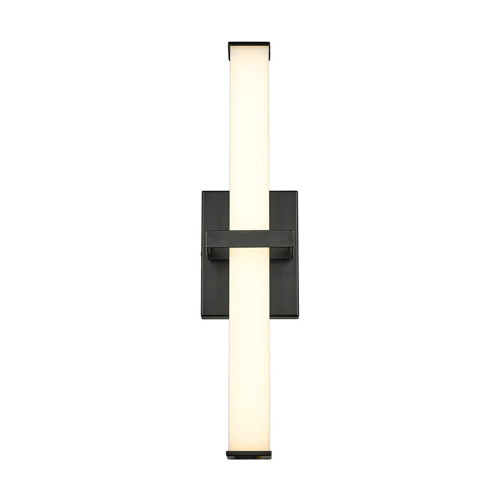 Bring modern elegance into your home with the Golden Lighting Elon Integrated LED 19in Vanity in Matte Black. Featuring an acrylic shade and a matte black frame, it creates a welcoming atmosphere. This acrylic shade is beautifully designed to diffuse light evenly for a soft, glare-free glow, making it perfect for a contemporary bathroom. The timeless satin-matte finish provides smooth texture and absorbs light, enhancing the sophistication of your space. Damp Location Rated, it is suitable for covered and semi-enclosed spaces like bathrooms and laundry rooms. Enjoy the flexibility of installation without concerns, and an energy-efficient illumination solution with integrated LED technology that offers 1750 lumen output. Overall Dimensions: 19"W x 4.75"H x 3.75"D. Illuminate your bathroom with style and the trusted quality of Golden Lighting.