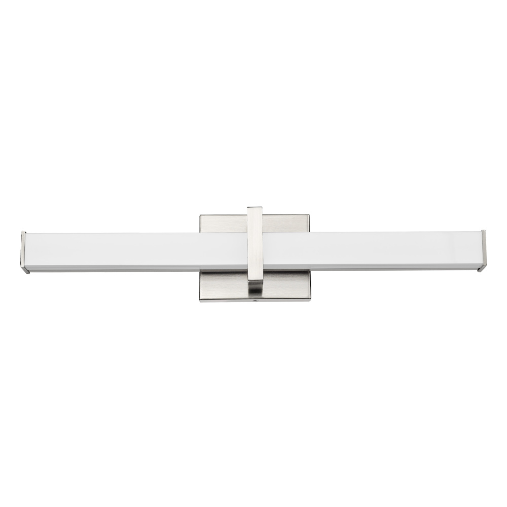 Experience modern elegance with the Golden Lighting Elon Integrated LED 24in Vanity in Pewter. Featuring an Acrylic shade and a Pewter frame, it creates a welcoming atmosphere in any bathroom. The Acrylic shade offers a milky, translucent white color with a smooth, satin-matte finish, designed to diffuse light evenly for a soft, glare-free glow. This timeless material adds an ethereal quality while enhancing the overall aesthetic. Our Pewter finish offers a soft and classic alternative to brighter silver tones, enhancing your space with its understated and timeless appeal, perfect for balancing traditional and contemporary elements. Designed for damp locations, this fixture is suitable for covered or semi-enclosed spaces like bathrooms and laundry areas. Easy to install with overall dimensions of 24"W x 4.75"H x 3.75"D, it includes integrated LED technology providing energy-efficient illumination with 2250 lumens and a warm 3000K glow. Transform your bathroom into a modern sanctuary with this stunning fixture made to last.