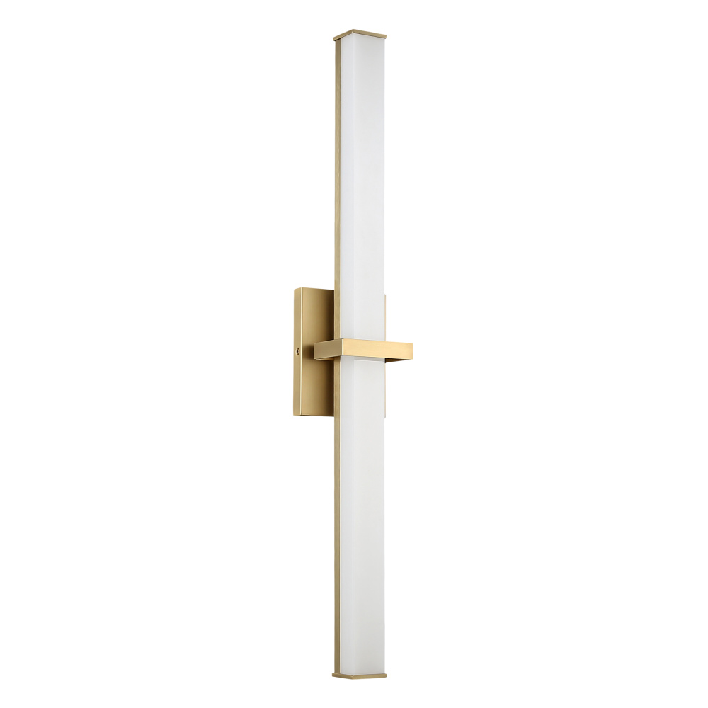 Elevate your space with the Golden Lighting Elon Integrated LED 30in Vanity in Brushed Champagne Brass. Featuring an Acrylic shade and a Brushed Champagne Brass frame, this fixture invites a sophisticated radiance into your bathroom. The Acrylic shade provides a milky, translucent white color with a smooth, satin-matte finish, expertly designed to diffuse light evenly for a soft, glare-free glow. This elegant material enhances the wash of light while complementing its refined design. Our Brushed Champagne Brass finish merges warmth and softness, making it an elegant choice for both modern and traditional interiors. Suitable for damp locations, this vanity light is perfect for covered spaces like bathrooms or laundry areas. With overall dimensions of 30"W x 4.75"H x 3.75"D, it incorporates integrated LED technology offering brilliant illumination with 2496.12 lumens and a warm 3000K glow. Bring a touch of understated luxury to your home with this exquisite vanity fixture.
