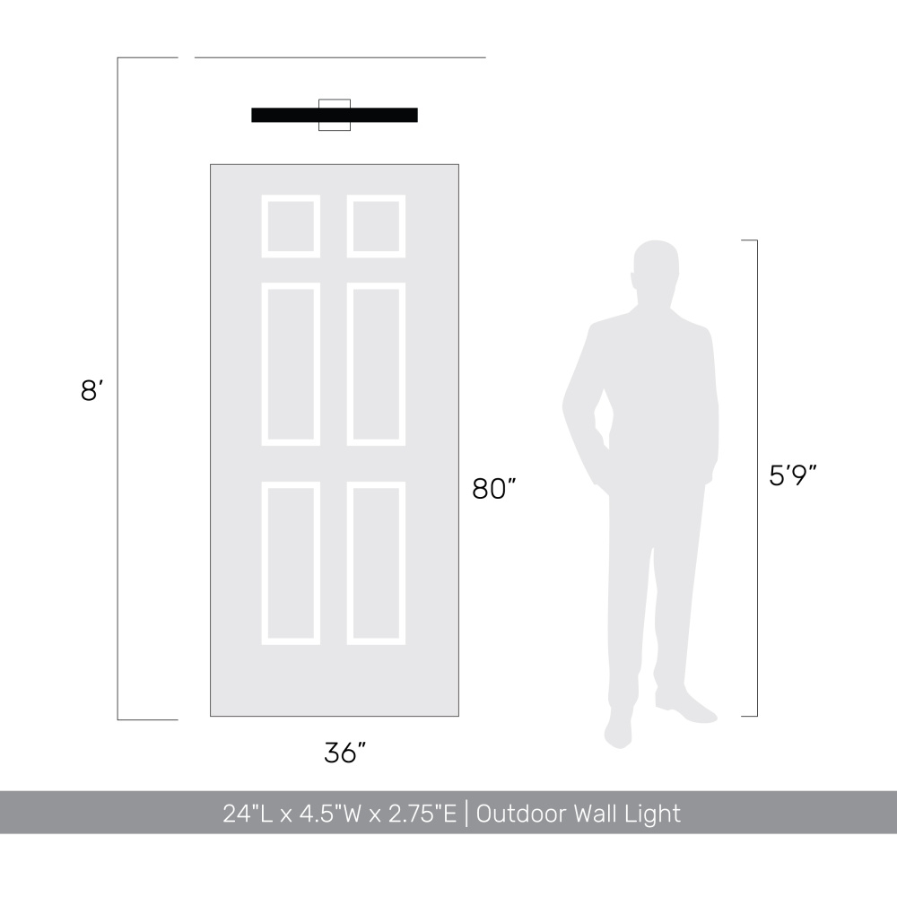 Bring modern elegance into your home with the Golden Lighting Enso Integrated LED 24" Outdoor Wall in Smooth Grey. Featuring a durable design and smooth gray finish, it creates a welcoming atmosphere. \n\nEnjoy the sleek, linear form accentuated by a fine, linear fluted texture, enhancing the play of light and shadow. This minimalist fixture is built for the outdoors and is perfect for contemporary spaces. \n\nThe smooth gray finish features soft brown undertones and a handsome matte surface, adding warmth and modern charm. \n\nFunctional and inviting at entryways, patios, and garage doors, this fixture is also Wet Location Rated, ensuring it withstands the elements. \n\nWith overall dimensions of 24"W x 4.5"H x 2.75"D, this outdoor wall light boasts integrated LED technology with 713.7 lumens, allowing you to choose from five color temperatures, from a cozy 2700K to a crisp 5000K. \n\nClose with the perfect blend of style and durability, ideal for transforming any outdoor space with lasting quality.