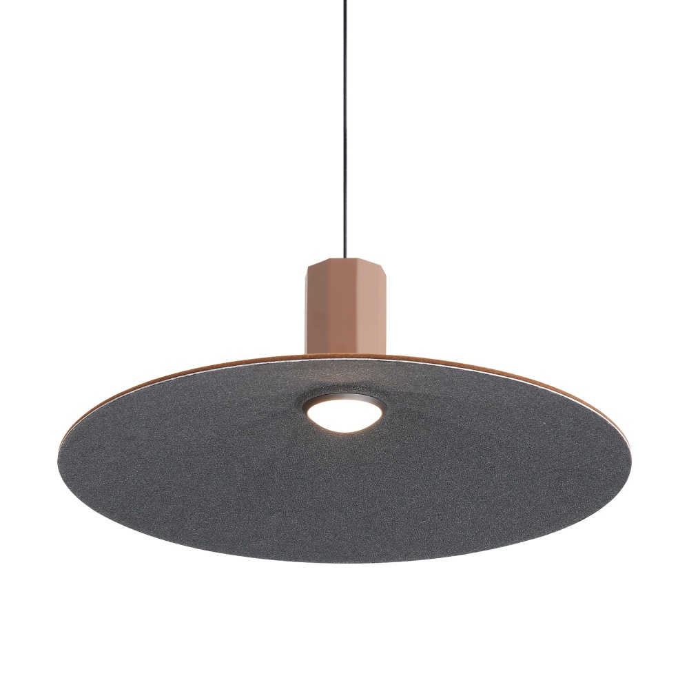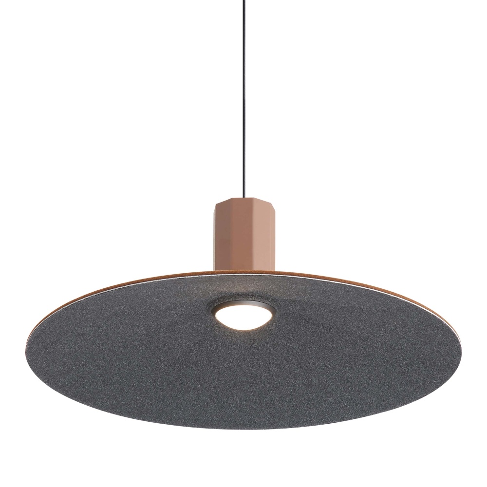 Bring modern elegance into your home with the Golden Lighting Faroe 20in Integrated LED Pendant. Featuring a felt shade and a coffee-colored frame, this fixture creates a welcoming atmosphere. The dual-toned shade includes a coffee-colored exterior and a black interior, which provides a cozy, focused light and enhanced sound-dampening properties. This rich finish adds warmth and sophistication to your modern or transitional interiors. Designed for dry locations, this pendant is adjustable in height from 9.5" to 129.5" and is ideal for areas not subject to moisture like living rooms and bedrooms. Overall dimensions are 19.5"W x 7.38"H x 19.5"D, with integrated LED technology delivering 610 rated lumens at a warm 3000K glow. Elevate your space with this exquisite blend of beautiful design and practical features.