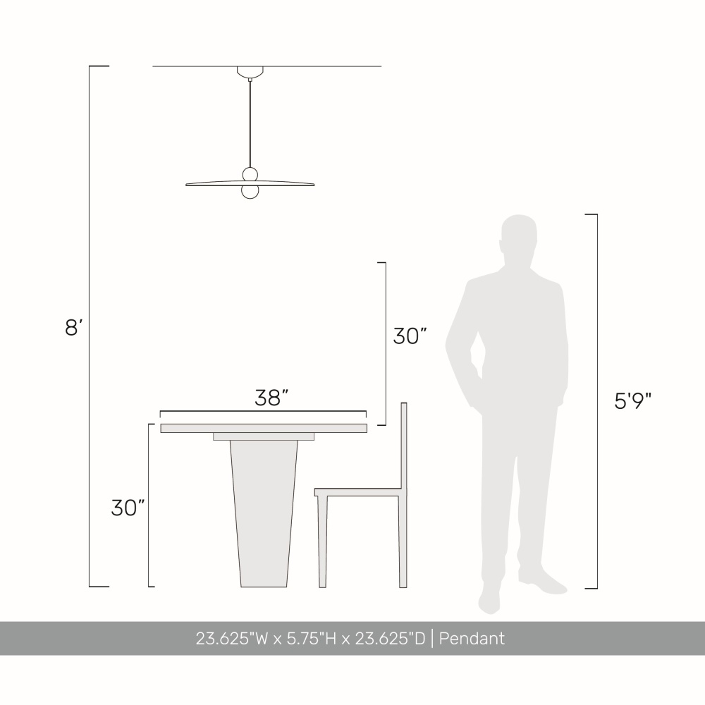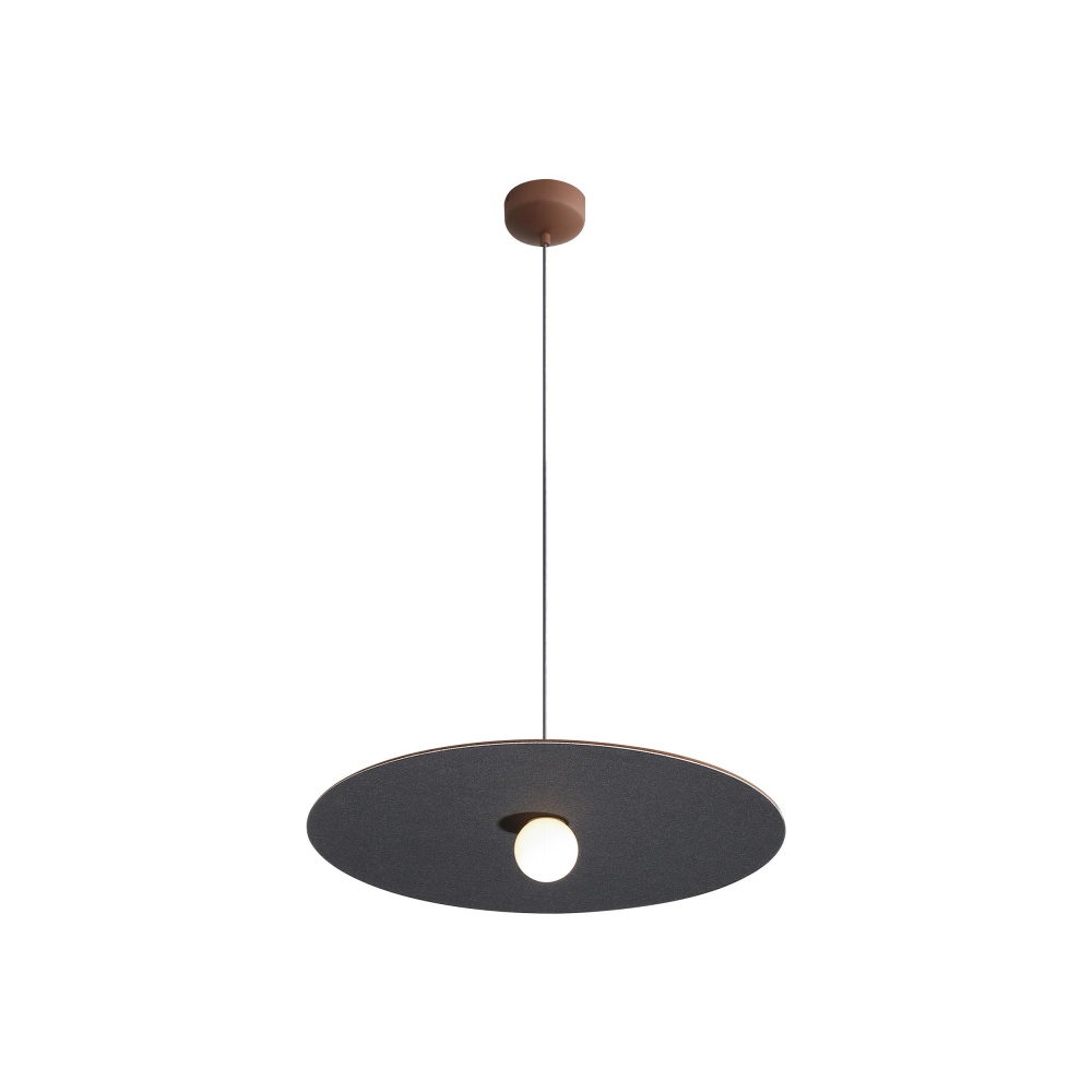 Bring modern elegance into your home with the Golden Lighting Faroe 24in Integrated LED Pendant. Featuring a felt shade and a Coffee frame, it creates a welcoming atmosphere. The Coffee-colored felt shade enhances sound quality while providing a cozy, focused light below, complemented by a rich black interior that softens the glow. This deep, rich brown finish adds a grounding and sophisticated element to any room, making it an ideal choice for modern and transitional interiors. Add a stylish statement to kitchens, dining rooms, or bedrooms — perfect for focused yet decorative illumination in entryways, foyers, and even bathrooms. Dry Location Rated: Ideal for indoor spaces not subject to moisture, such as bedrooms, living rooms, and hallways. Sloped-Ceiling Compatible, easily install on angled ceilings and customize the hanging length to suit your space with adjustable height: Min: 7.875"- Max: 127.875". Overall Dimensions: 23.63"W x 5.75"H x 23.63"D. Enjoy brilliant, energy-efficient illumination with integrated LED technology providing 320 rated lumens and a 3000K CCT for a warm glow. The Faroe collection blends luxury with responsibility, proving that design can be both beautiful and eco-friendly.