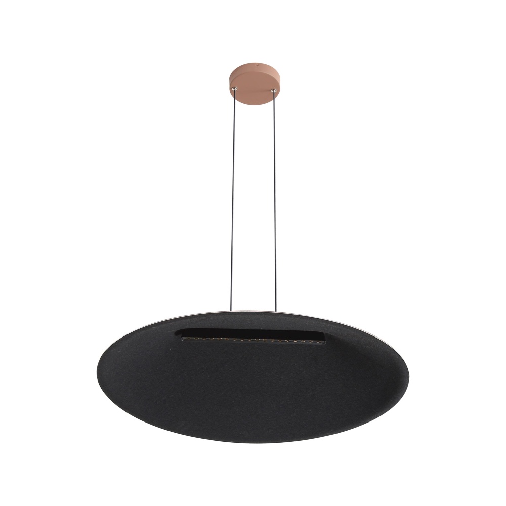 Bring modern elegance into your home with the Golden Lighting Faroe 30in Integrated LED Pendant. Featuring a felt shade and a Coffee frame, it creates a welcoming atmosphere. The Coffee-colored felt shade enhances sound quality while providing a cozy, focused light below, complemented by a rich black interior that softens the glow. This deep, rich brown finish adds a grounding and sophisticated element to any room, making it an ideal choice for modern and transitional interiors. Add a stylish statement to kitchens, dining rooms, or bedrooms — perfect for focused yet decorative illumination in entryways, foyers, and even bathrooms. Dry Location Rated: Ideal for indoor spaces not subject to moisture, such as bedrooms, living rooms, and hallways. Sloped-Ceiling Compatible, easily install on angled ceilings and customize the hanging length to suit your space with adjustable height: Min: 7.375"- Max: 127.375". Overall Dimensions: 29.63"W x 6"H x 29.63"D. Enjoy brilliant, energy-efficient illumination with integrated LED technology providing 600 rated lumens and a 3000K CCT for a warm glow. The Faroe collection blends luxury with responsibility, proving that design can be both beautiful and eco-friendly.